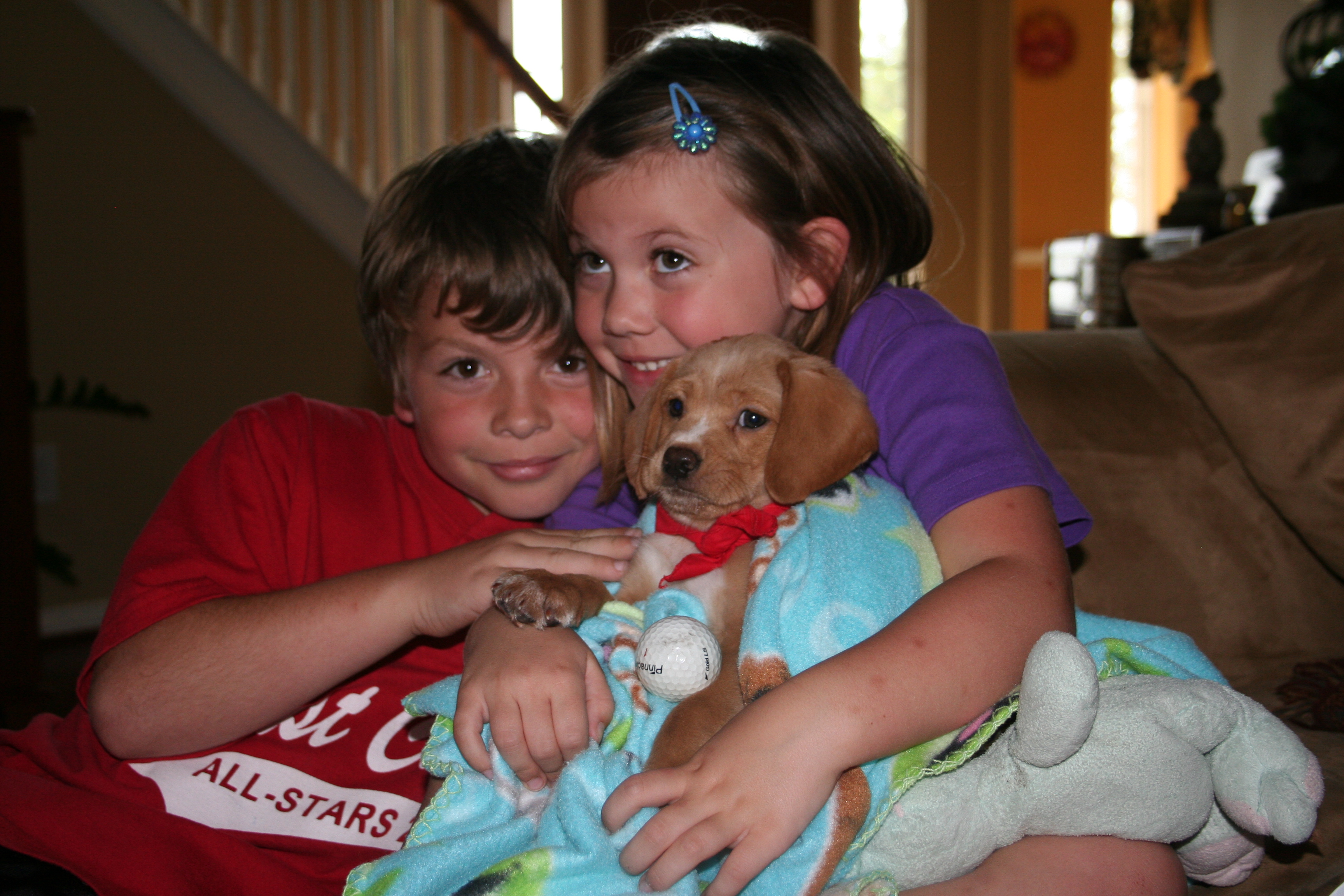Long story short, Payton fell in love with Pedey (his mama taught him well), and we had to have him. Trevor, being the good sport that he always is, gave in, even though we already had one dog too many for him. Payton and I reasoned that Harry needed a dog, and since it was almost summer, the kids could help take care of this puppy.