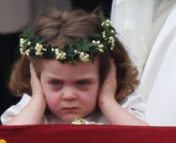It was William’s goddaughter, standing next to Kate on the palace balcony after the ceremony. There was a cool flyover of vintage fighter planes, and it must have been too loud for this little darlin. She reminds me a lot of the little darlin who lives at my house.