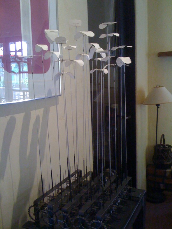 This creation was simply amazing. I don’t even know how to describe it, so here’s the rudimentary breakdown: cogs and wheels on the bottom powering thin metal spears upon which paper birds perch, and once the mechanism is engaged, flutter and fly at different heights and varying speeds. Wow. Just wow.