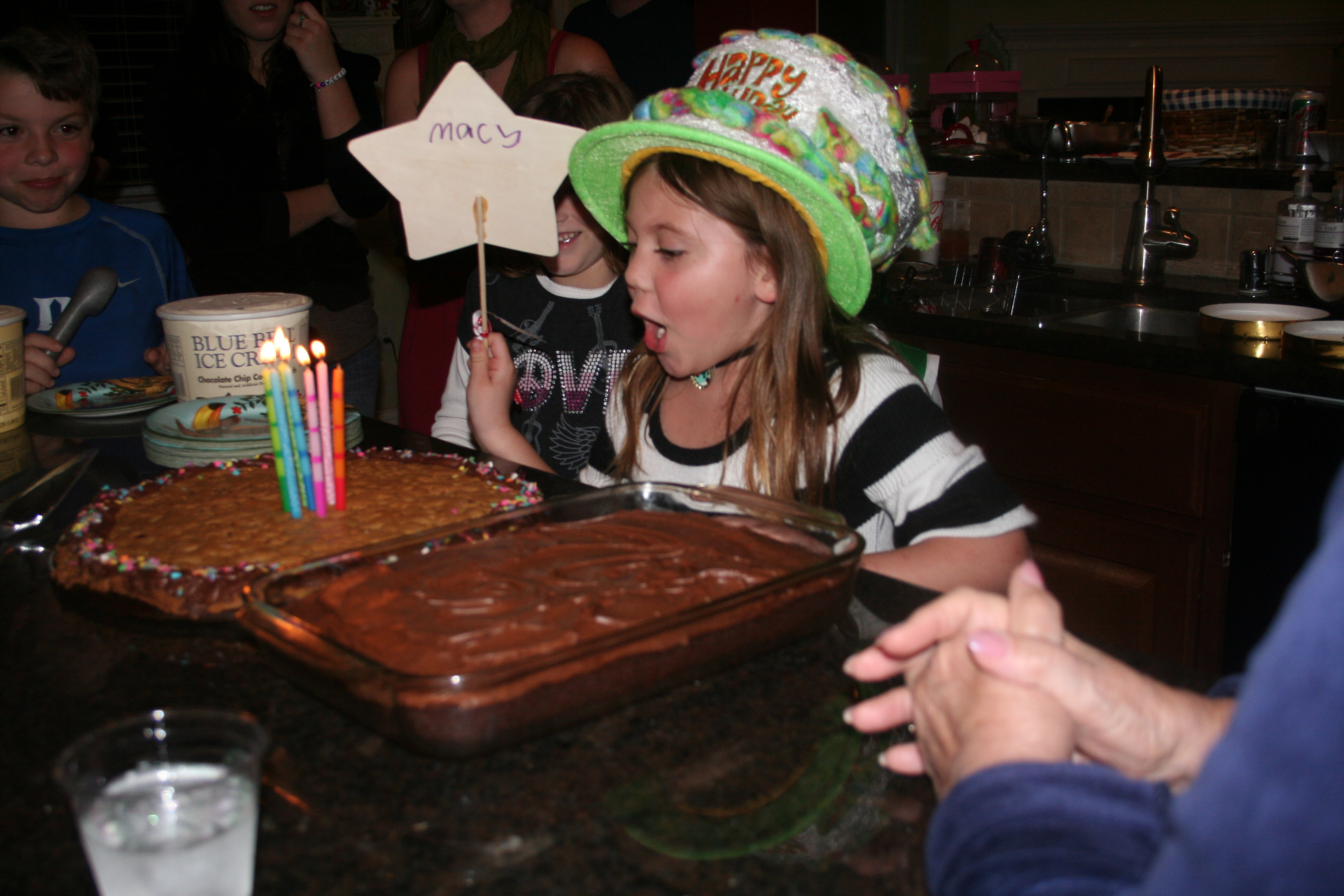 What I love about this photo is not the intake of breath by Macy as she prepared to blow out her birthday candles, but the pair of hands on the right. Sophia’s hands. She had a font-row seat to Macy’s birthday fun.
