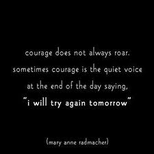 I was afraid she was going to get all touchy-feely on me — something I really don’t like, but she reigned it in. I’m so glad. Because I really like her statement on courage, and it’s something I’ve been thinking about a lot lately during recovery mode. This last surgery was harder than I expected, and the recovery has been way more arduous than I imagined. Knowing that this surgery isn’t the last one is rough as well, but I’m trying to be a brave little soldier.