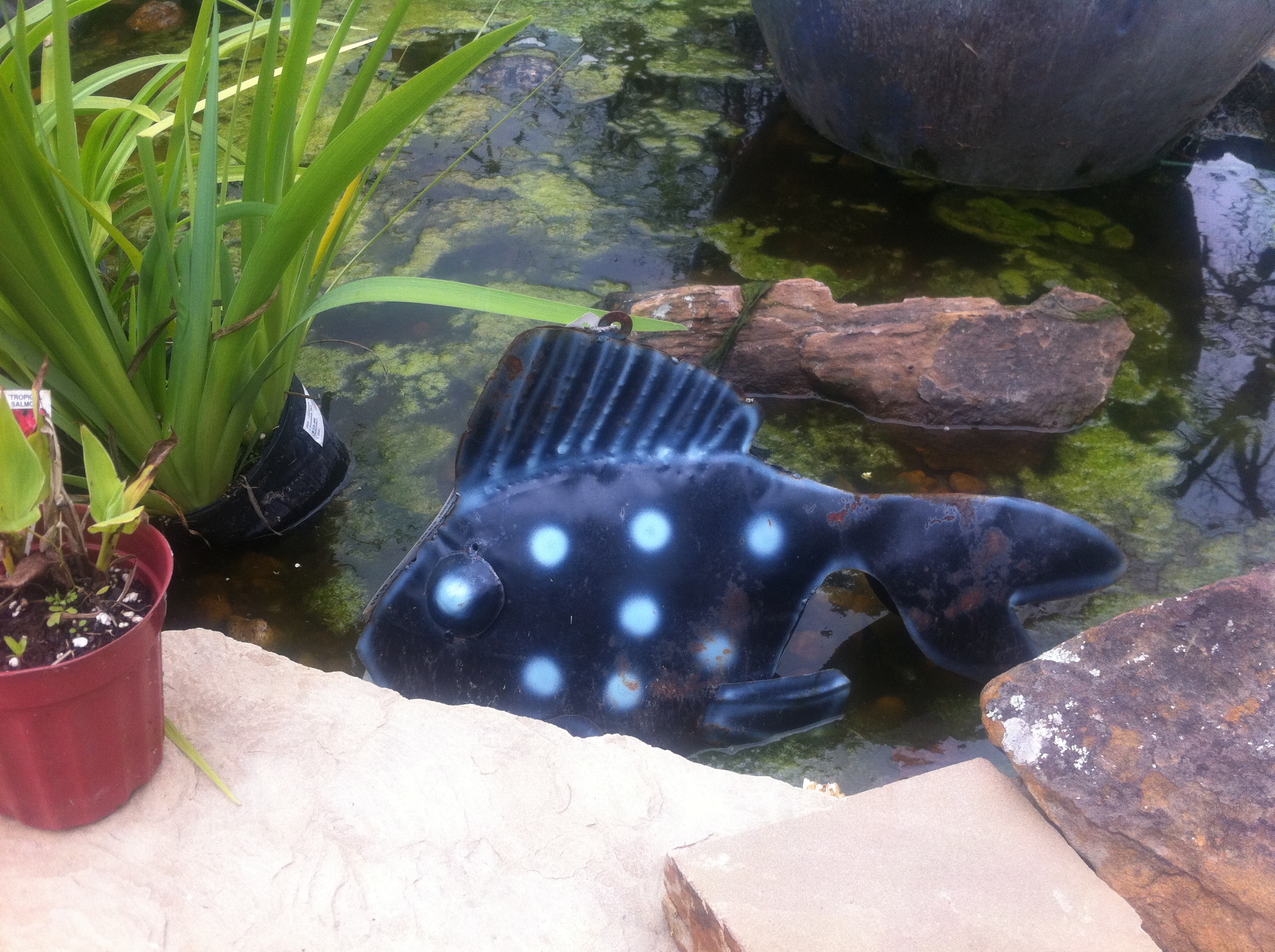 Just when I thought we’d seen every piece of yard art, we spied this little guy, tucked into the corner of a pond.