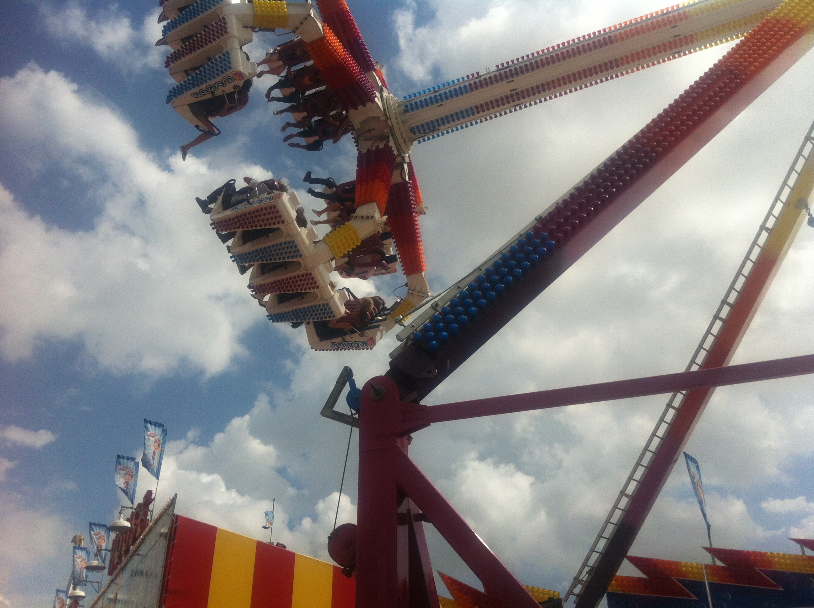My girl had heard about this ride or remembered it from last year or something. I can’t recall because I stopped breathing when I saw it and was focused on remaining upright as I saw people hurtling through the sky on this G Force of death.