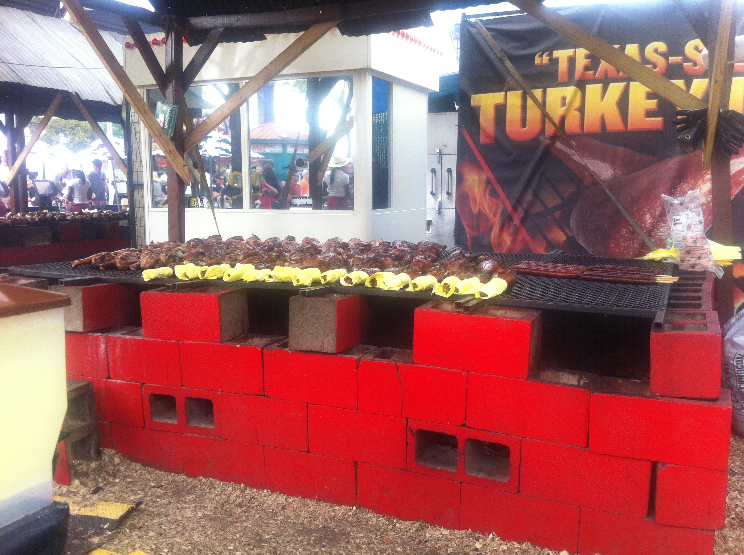 After the sweets we happened upon the meats. The Texas-sized turkey legs are popular.