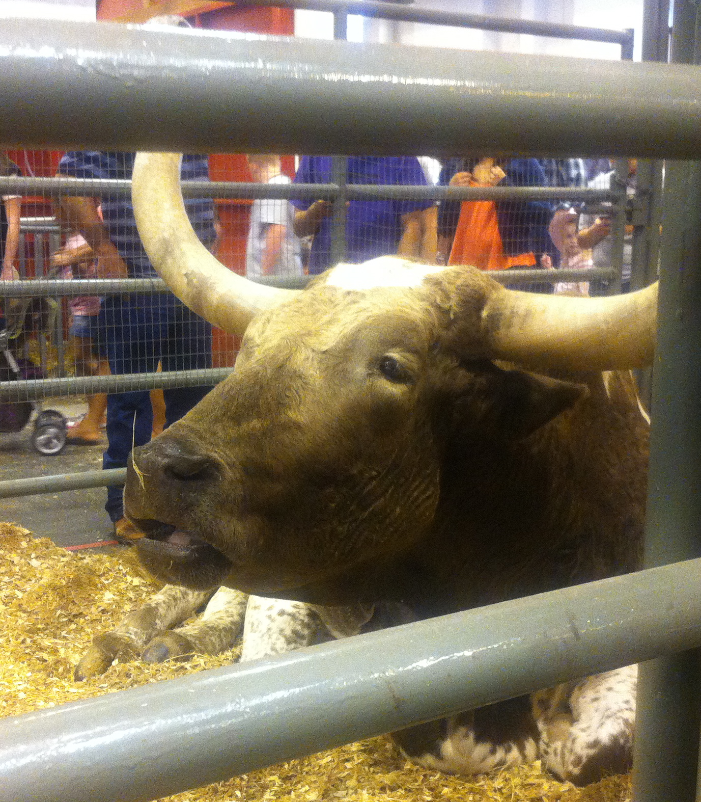 This longhorn looked like he had something to add to the topic. Perhaps it’s that some 2,000 students attend more than 100 different Texas universities on livestock show scholarships, enjoying $30 million in school funds.