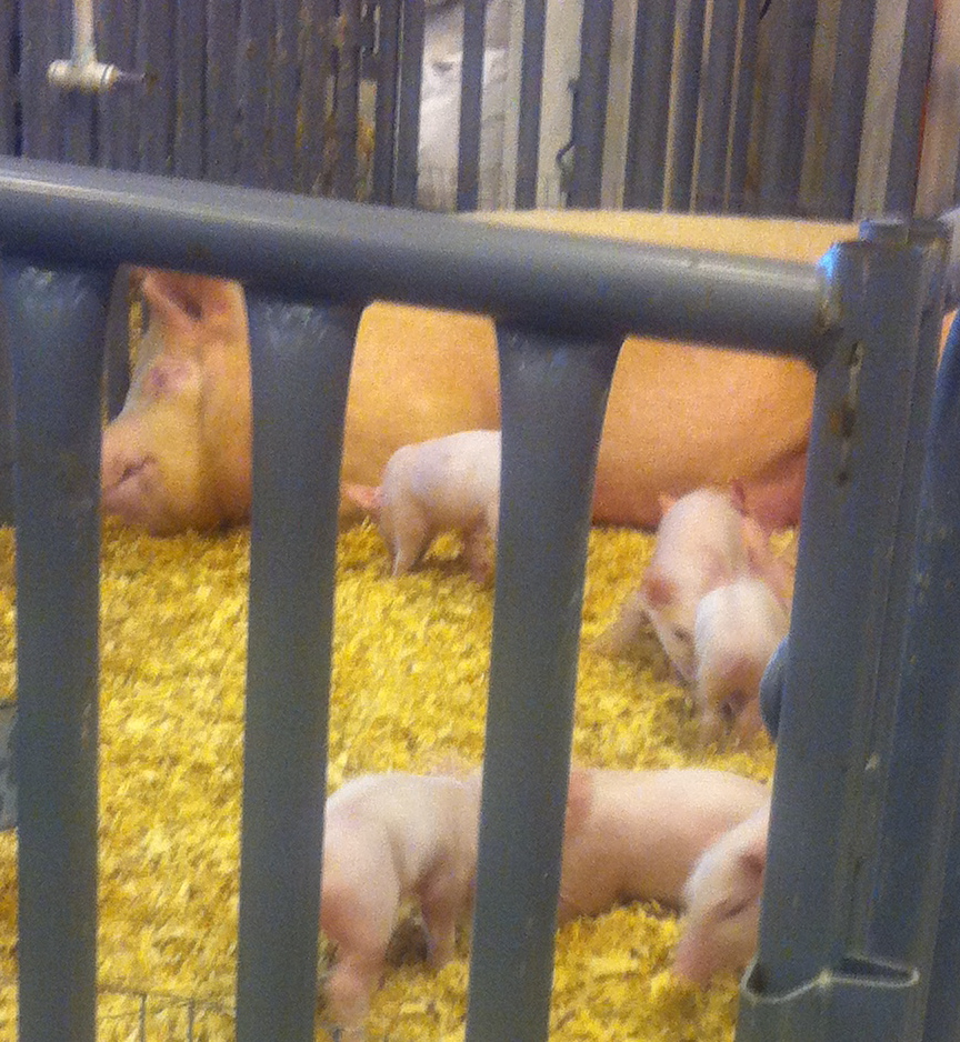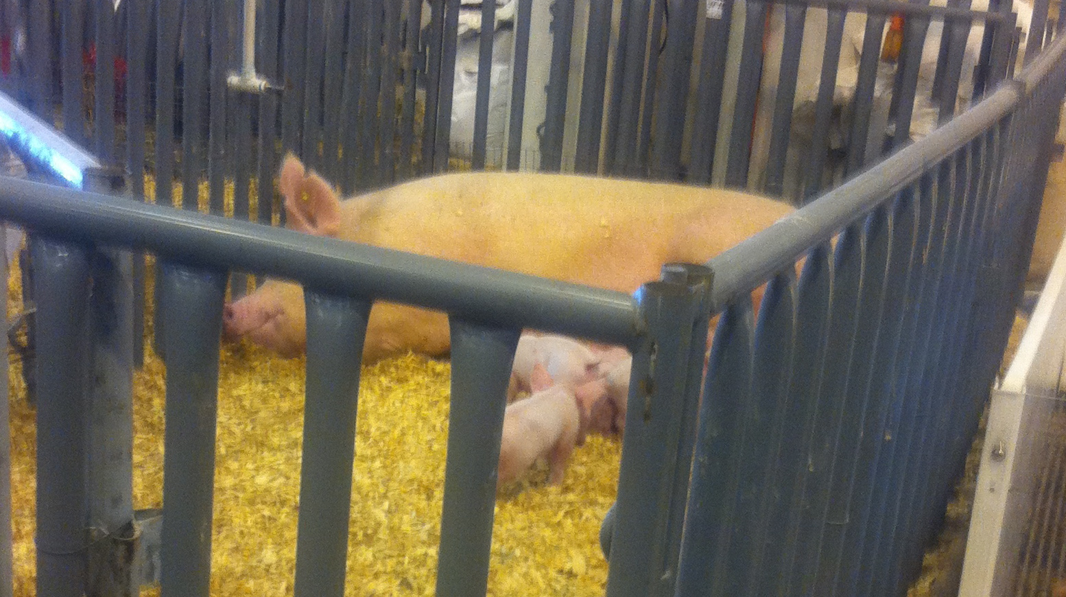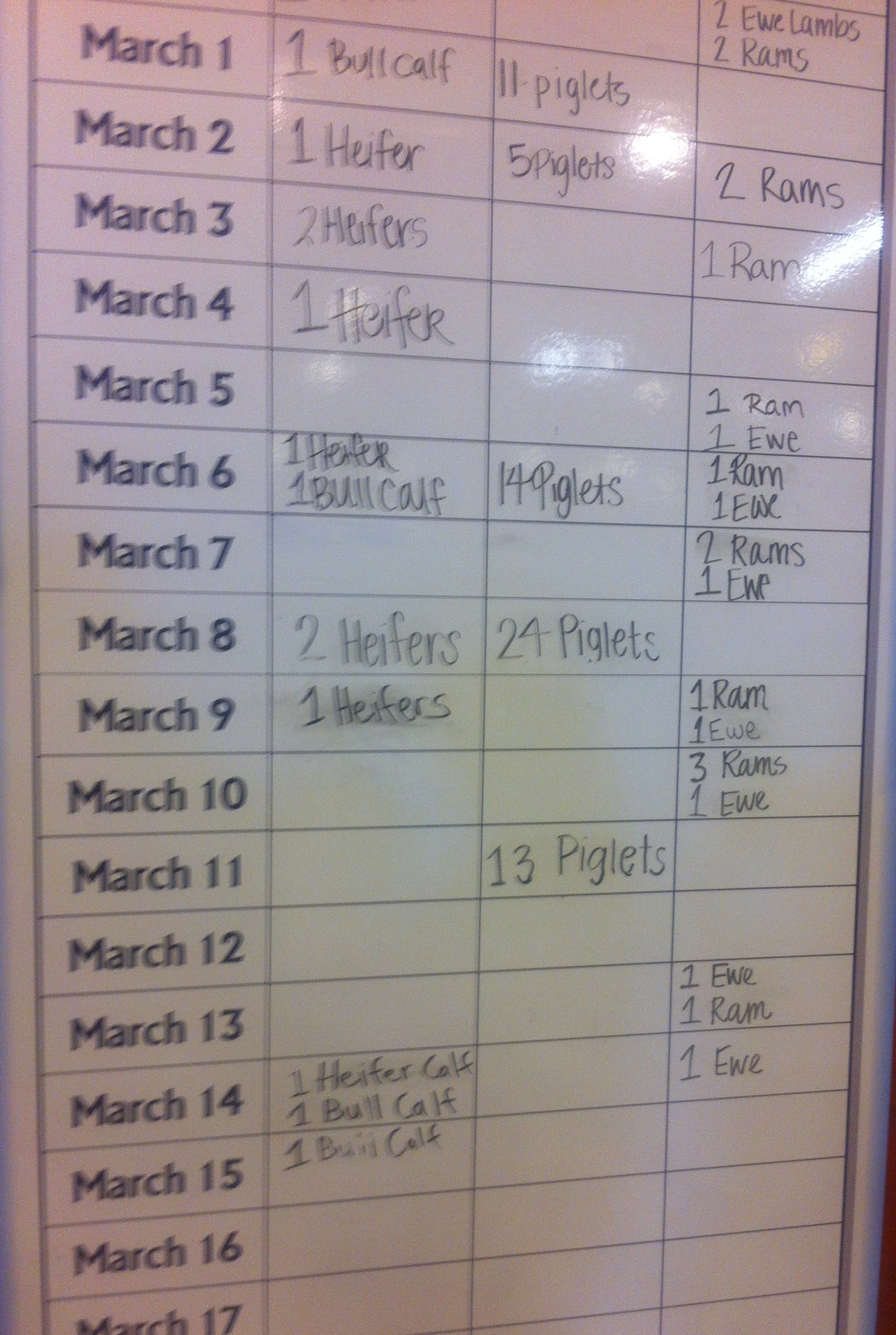 We saved the best for last at the livestock show: the birthing center. The tally board shows the babies born at the rodeo, and of course our eyes went straight to the column that lists the piglets.