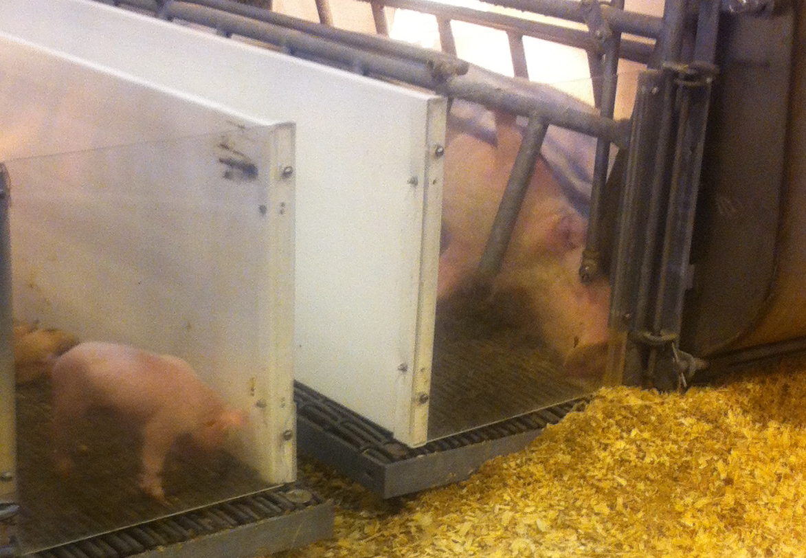 Why some of the mama pigs were in the clear enclosures with the scary-looking bars near their faces and some were in more friendly fenced enclosures I don’t know. Perhaps the scary-looking pens were for feeding and the fenced ones were for piggie playtime? The fenced ones allowed the piglets to run and play, and Macy and I loved watching them cavort like puppies.