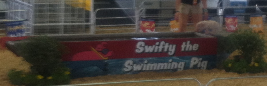 After the third race, it was showtime for Swifty the Swimming Pig. We’ve been wondering how our little piggie will take to water, once it warms up enough for her to dip her hooves in the pool. If Swifty is any indication, Piper will do just fine
