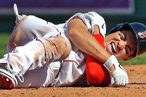 My favorite player suffered a nasty injury as his shoulder was crushed by the Rays’ Reid Brignac. Speculation ran rampant that the hottie center fielder would be out for the season.