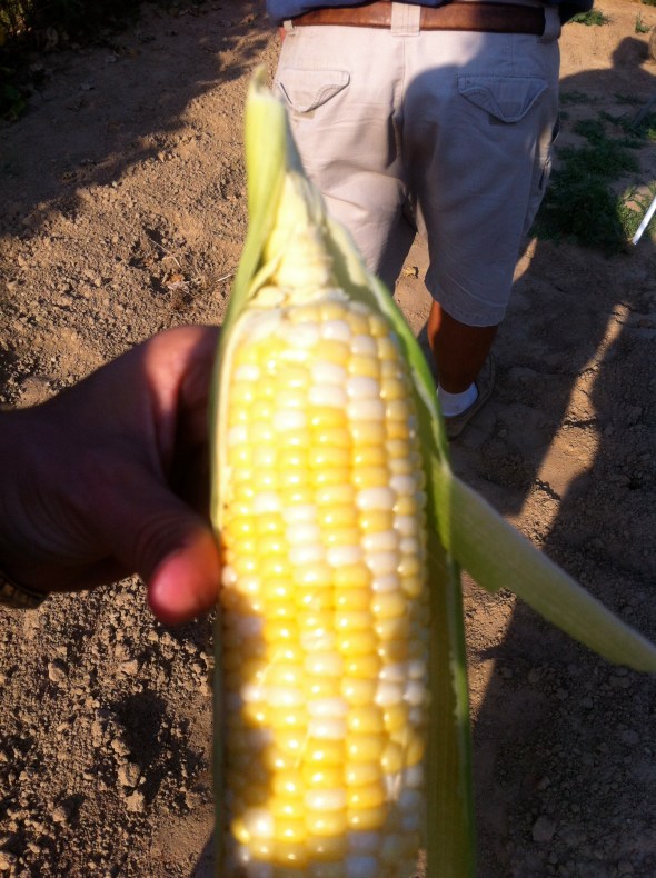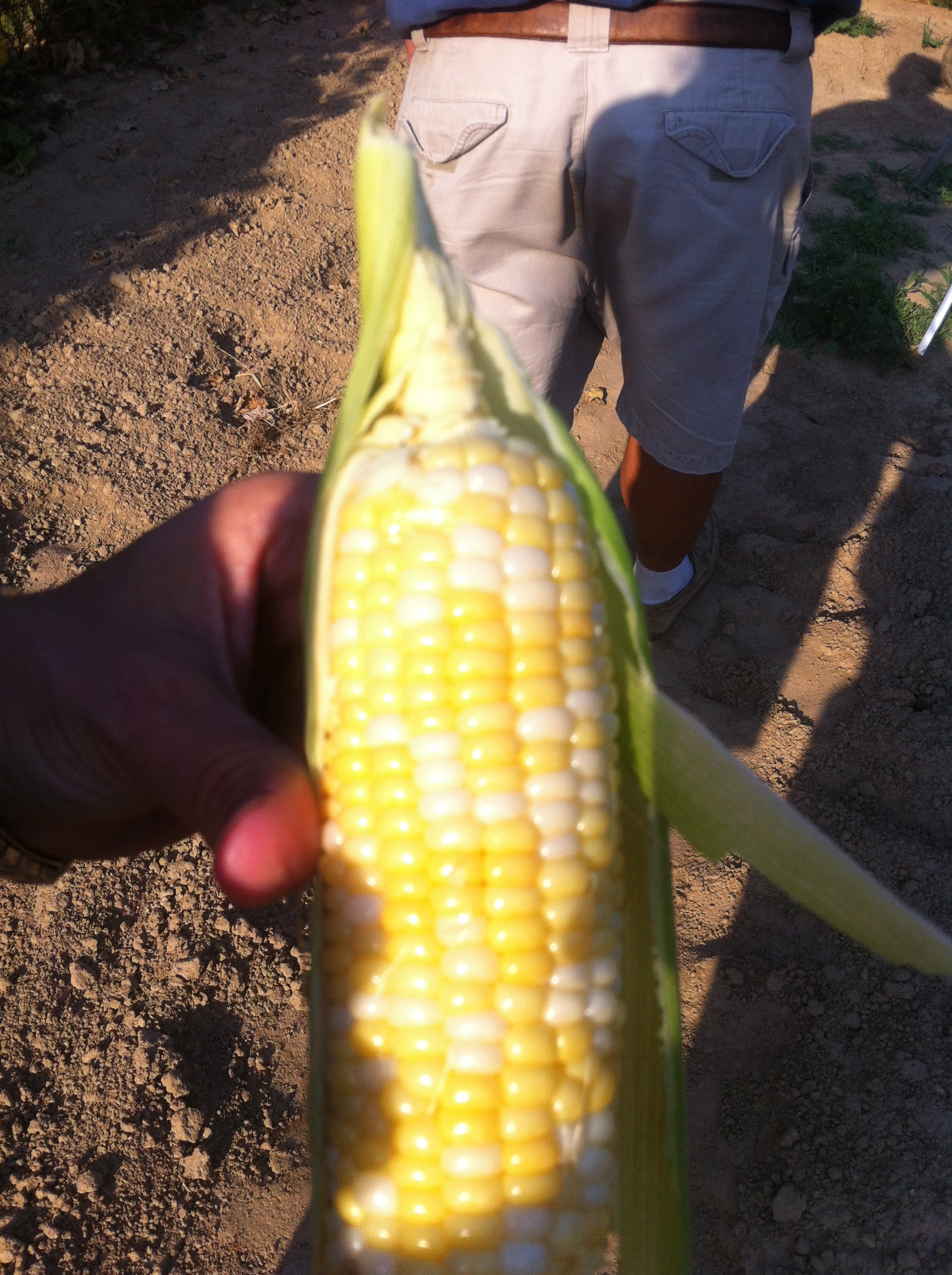 Here’s how it works: Papa picks the corn early, early in the morning once he’s deemed it ready. He can tell when it’s ready by looking at it on the stalk and by experience.