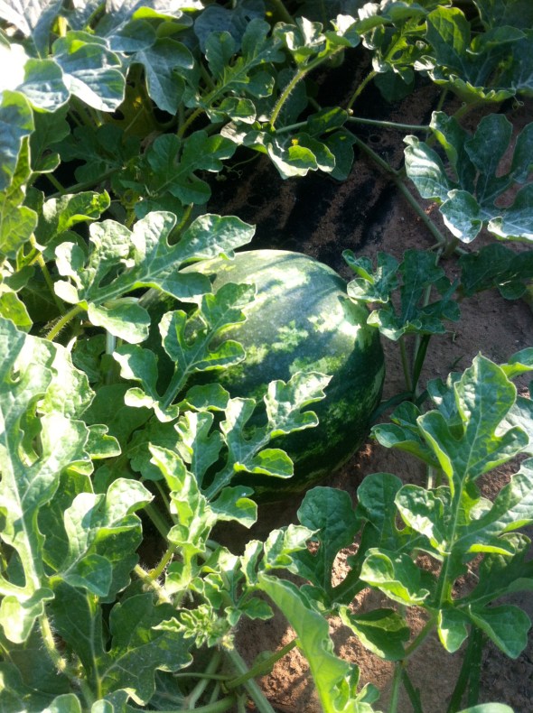 Our little piggie would lose her mind if she saw this watermelon, growing fat and ripe in the sun.