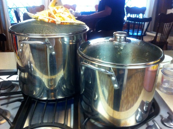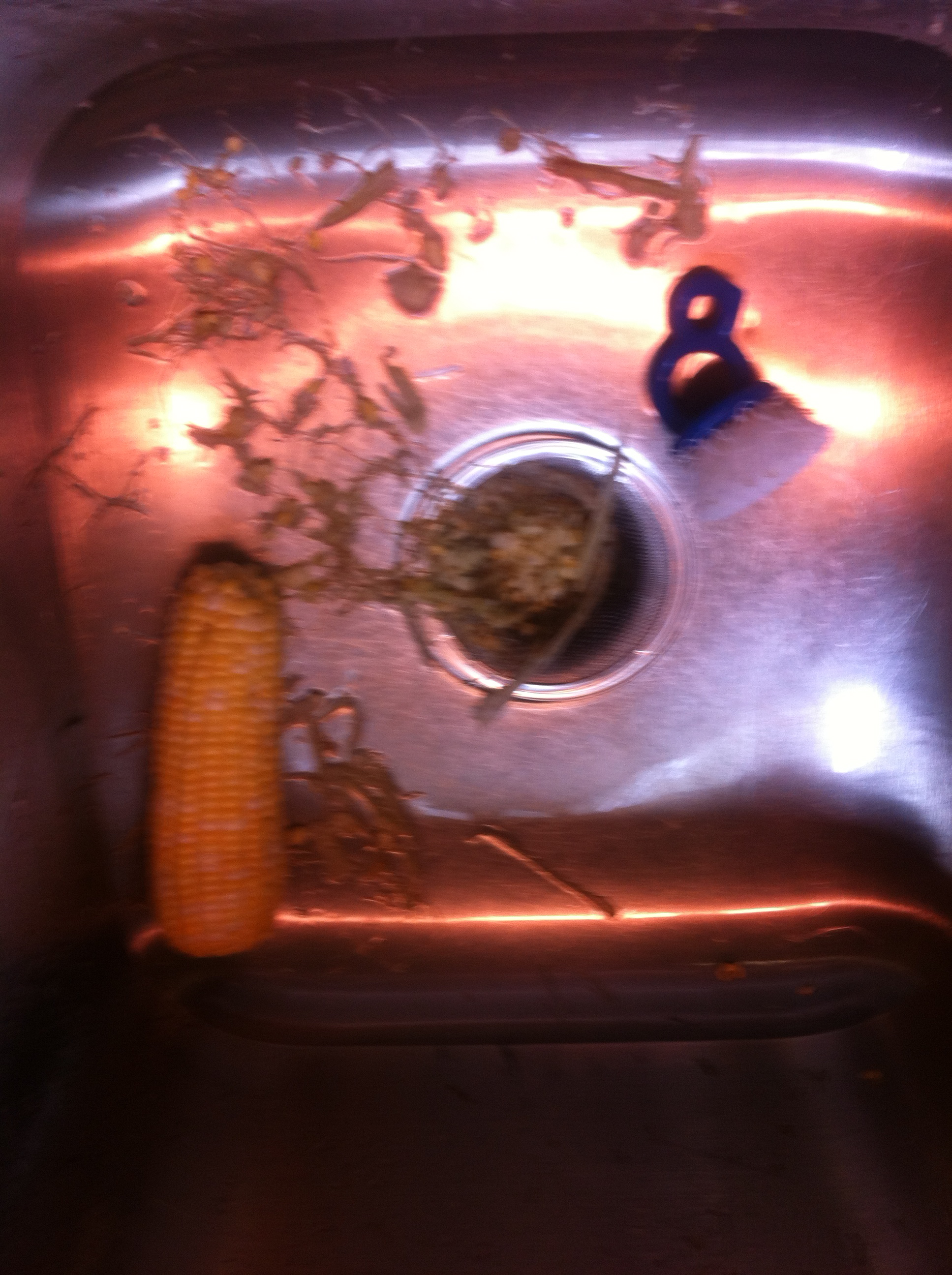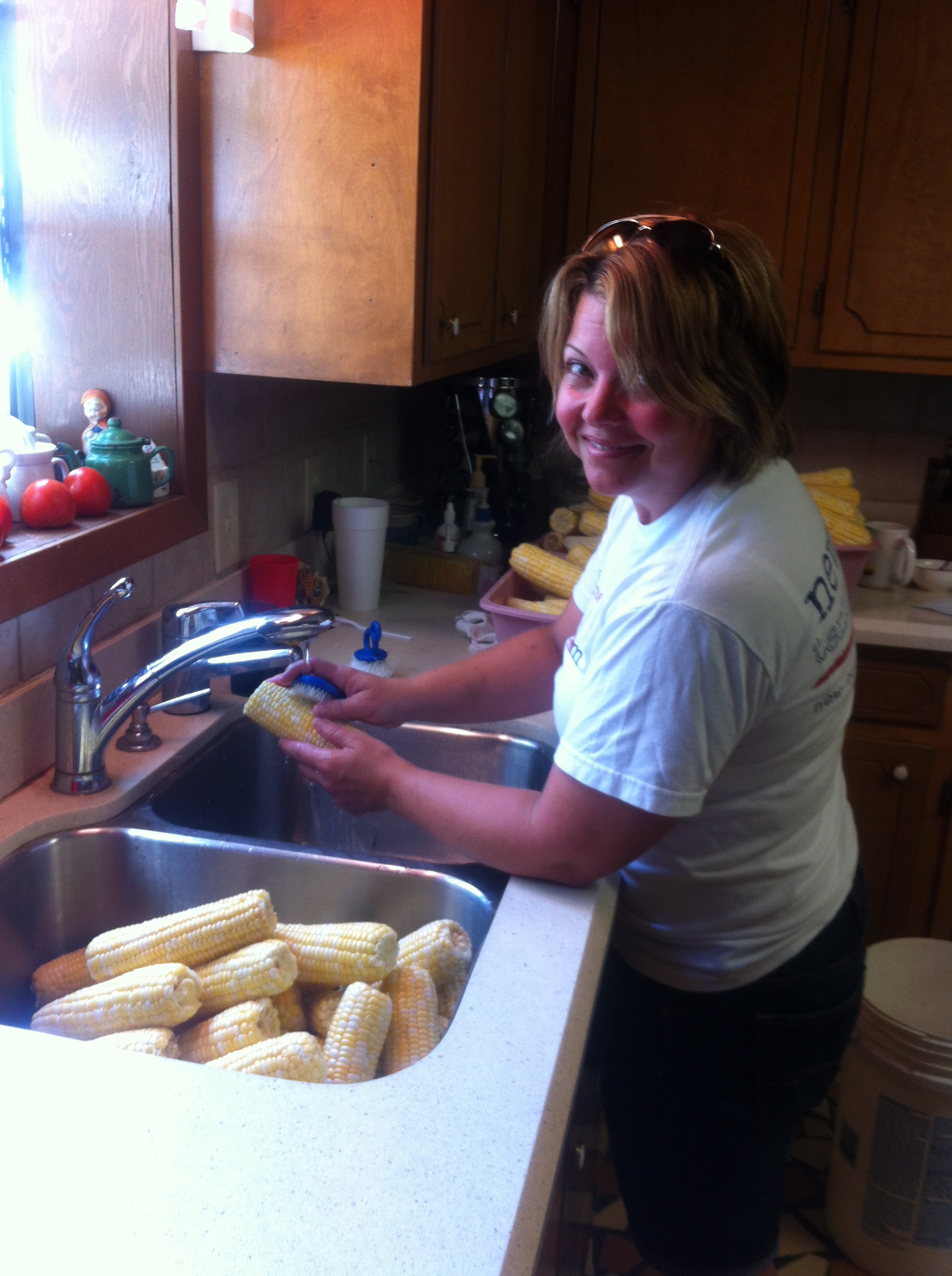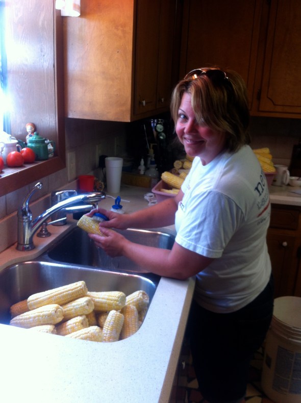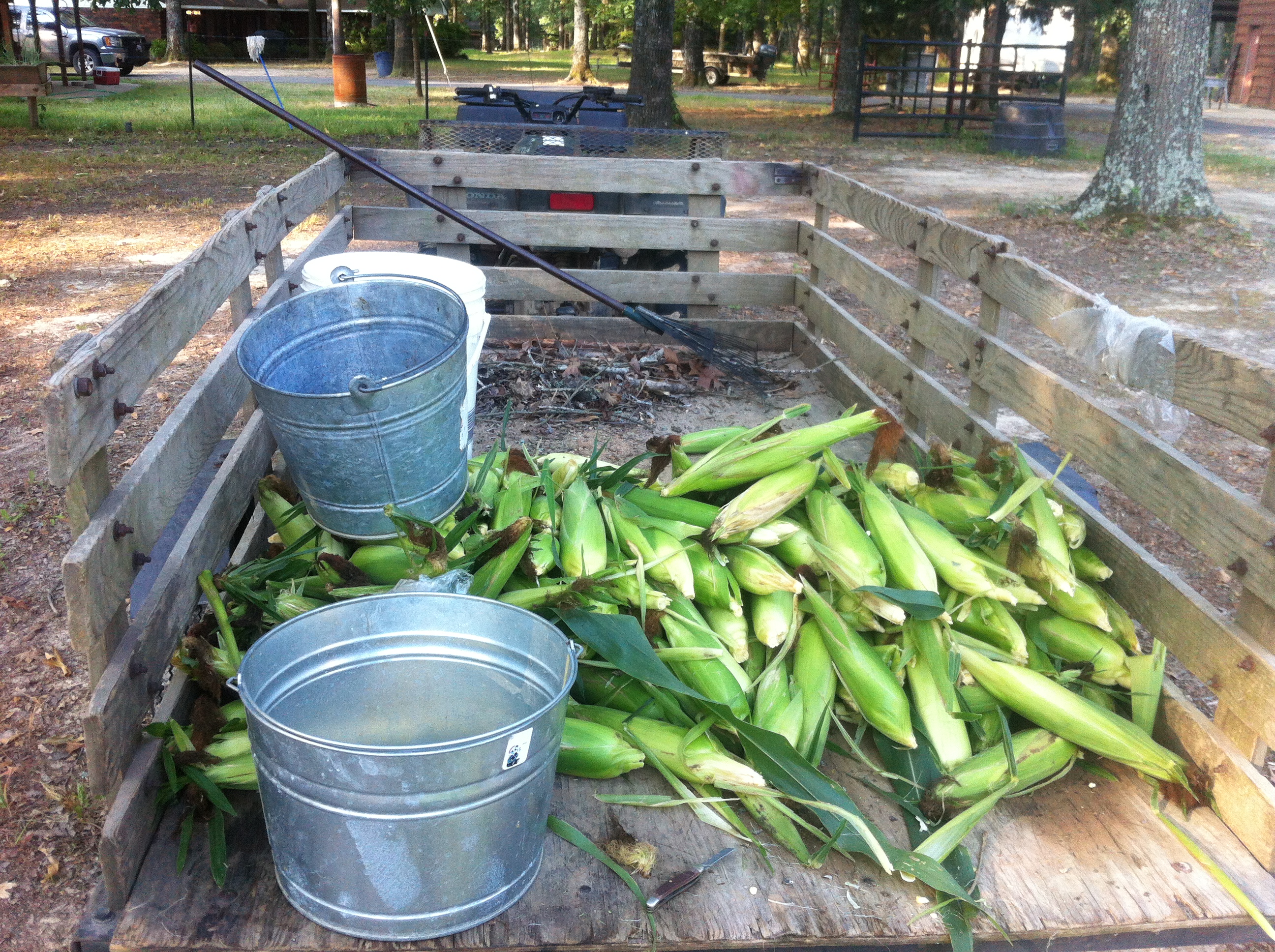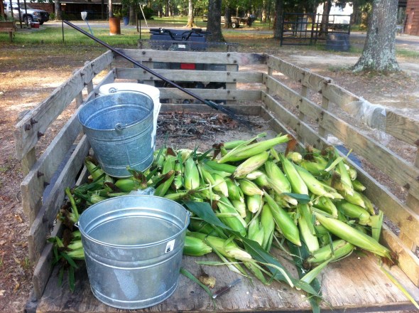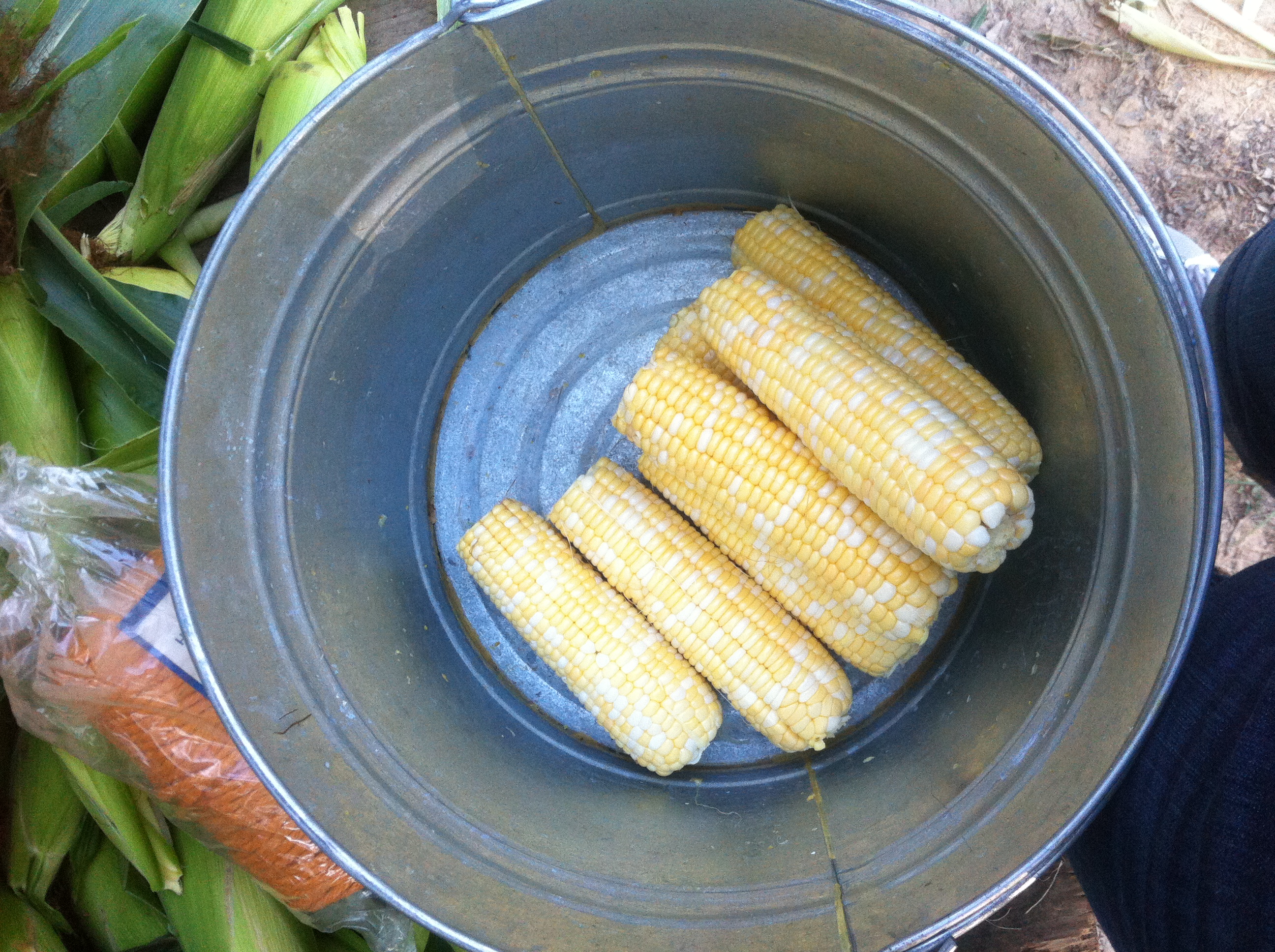 …and buckets full of corn are in the kitchen, ready for the next step.