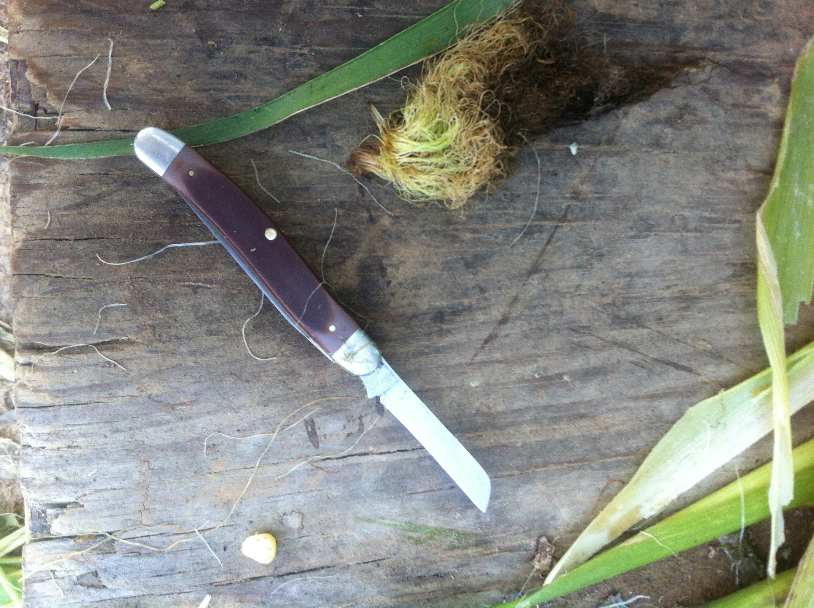As we shucked, Papa had his knife ready to deal with any soft spots on the corn.