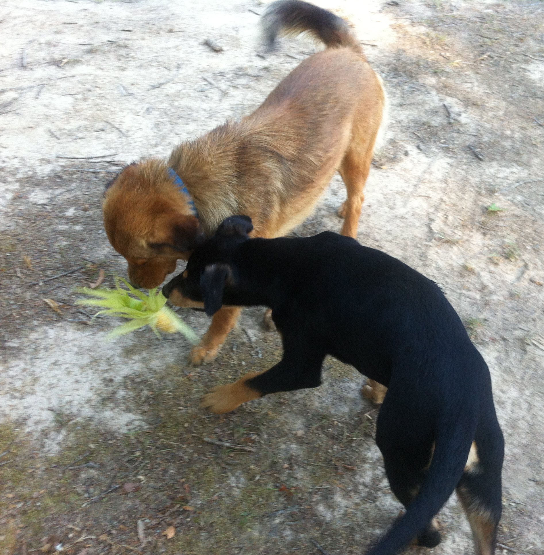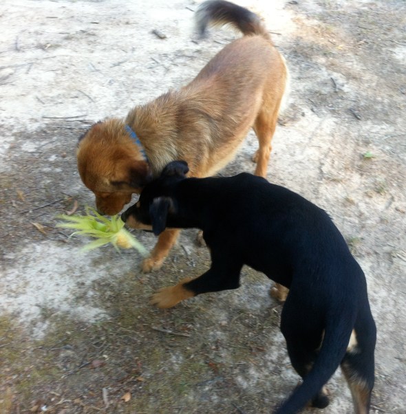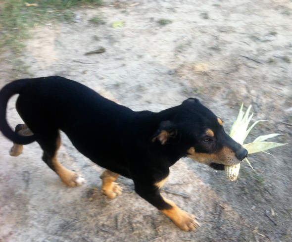 A few ears didn’t pass Papa’s strict inspection. Not quite up to snuff for us, but perfectly suited as a tug-of-war between Molly & JoJo.