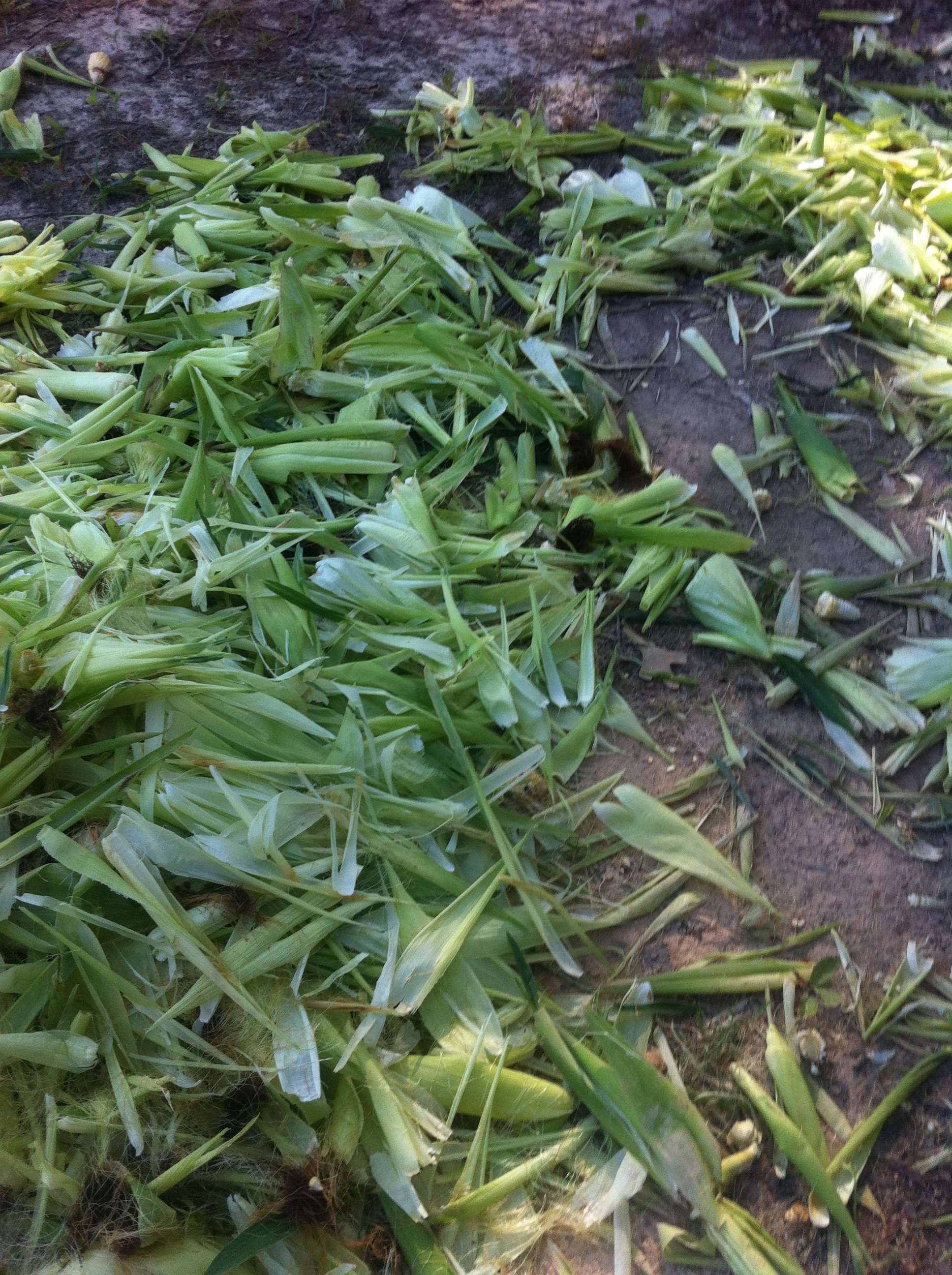 As we shucked, we tossed the ears into a bucket, ready to be toted into the house.