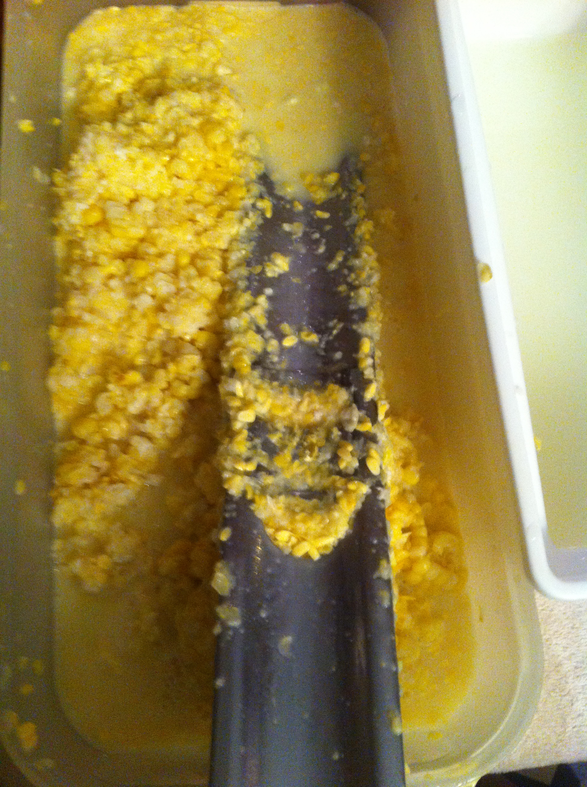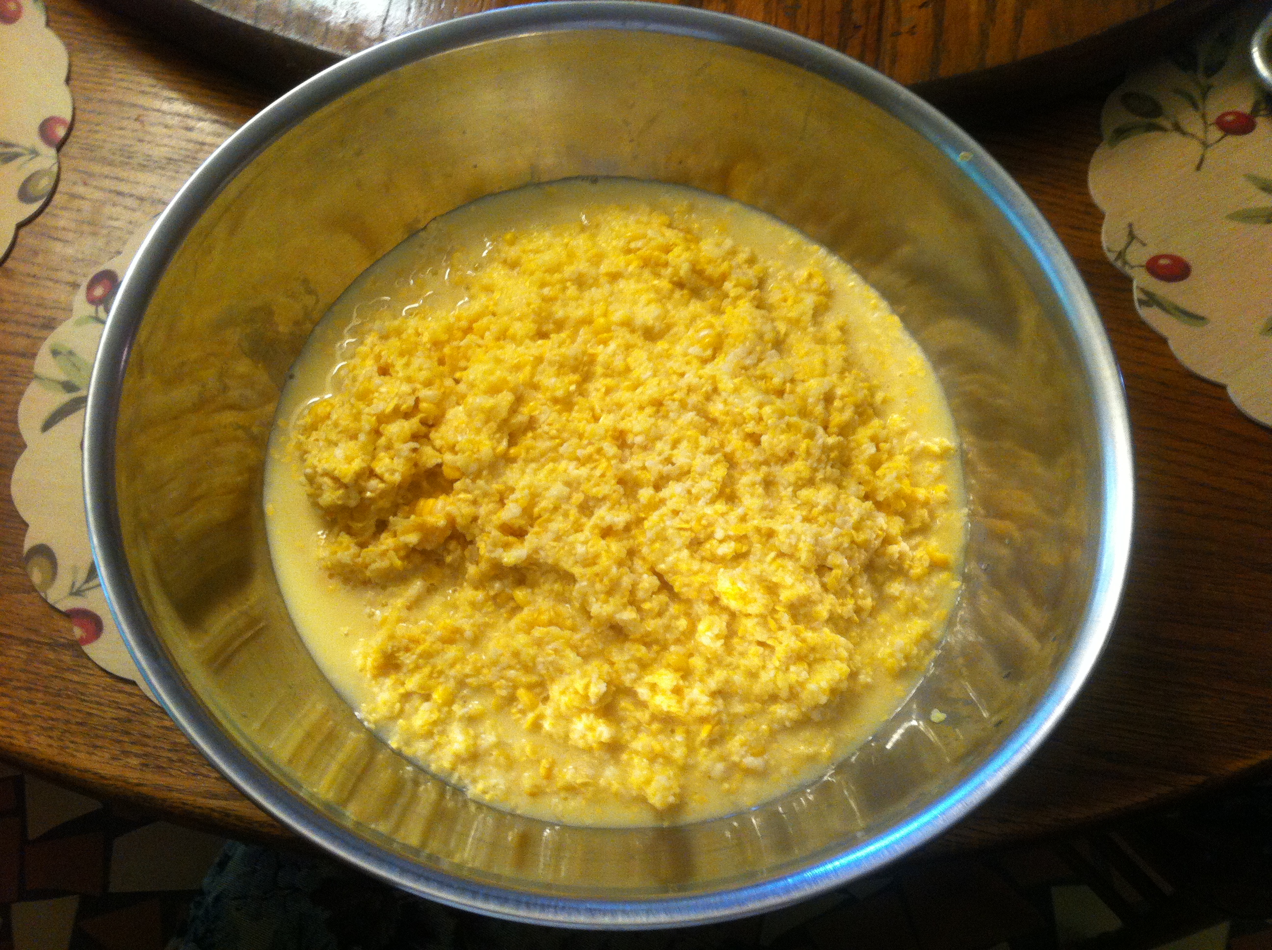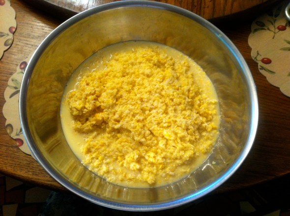 As we ran each ear through the cutter, Mama’s giant metal bowl slowly began to fill with liquid gold.