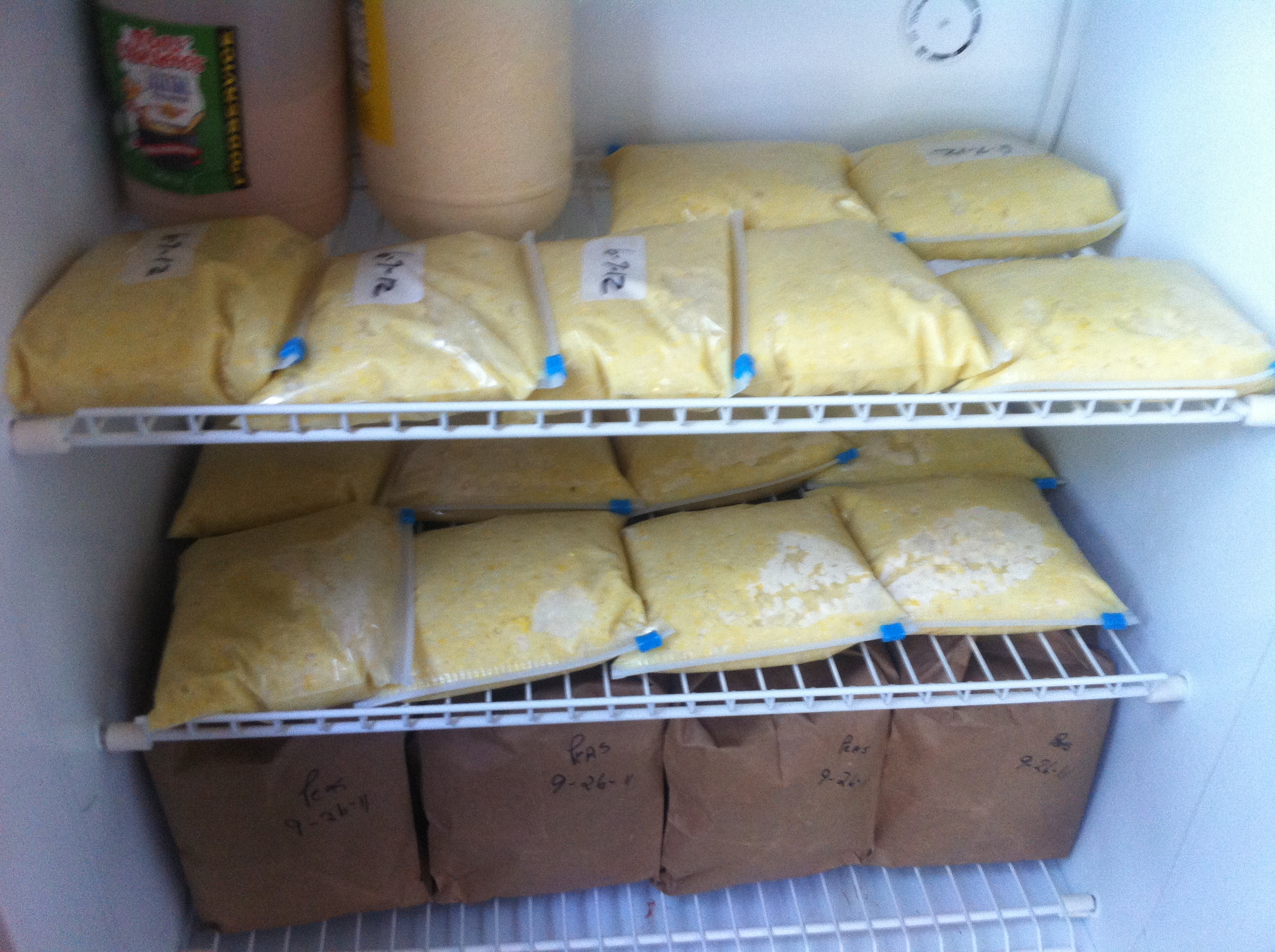 We processed 192 ears, which translates into 17 quart-sized bags of liquid gold.