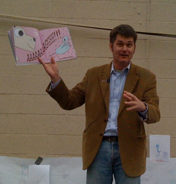 After his presentation, we stood in a very long line to have Mo to sign Macy’s books. He was funny and charming and everything I expect a kids’ book author to be. My favorite girl chattered endlessly about ideas she had for Mo’s books. She had a ton of story ideas in her 5-year-old brain, and I suspect it made perfect sense to her that they could collaborate. So when Mo asked Macy if she had any questions for him as he signed her books, she said, “What’s your phone number?” Sweet Mo was a bit taken aback, and when Macy explained that she has some ideas, he realized he didn’t need to panic, we weren’t a couple of crazy stalkers.