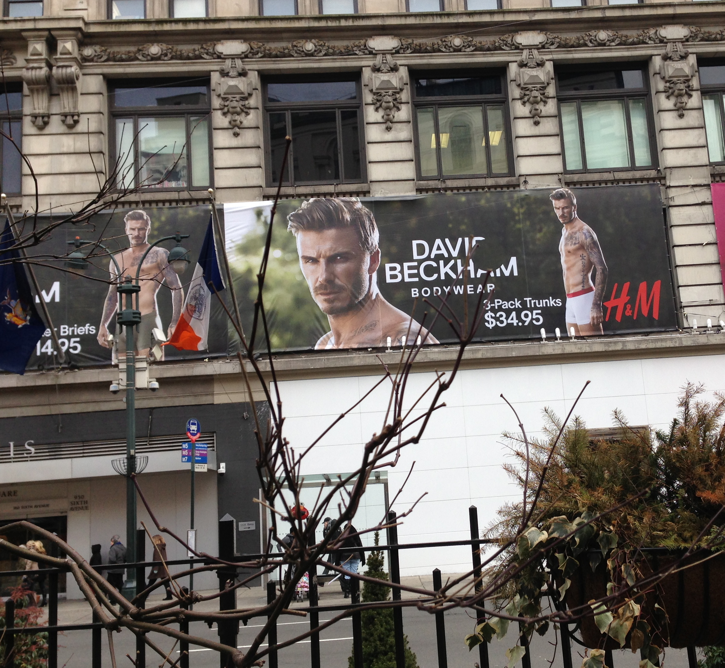 David Beckham in his underwear was just the ticket on a cold New York day. The warm-up was brief, however, and I pried my eyes away from Beck to keep moving. The temperature hovered in the mid-20s but the 30-mph winds made it feel a lot colder. Once I got down among the tall buildings, that wind ripped through even more ruthlessly. As I’d mentioned, this Texas girl was freaked out about those low temps, and with good reason. Even with a wool coat atop 3 layers and a hat and scarf and gloves, it was miserably cold. I only hope I was as fashionable as this woman sporting a chicken hat.