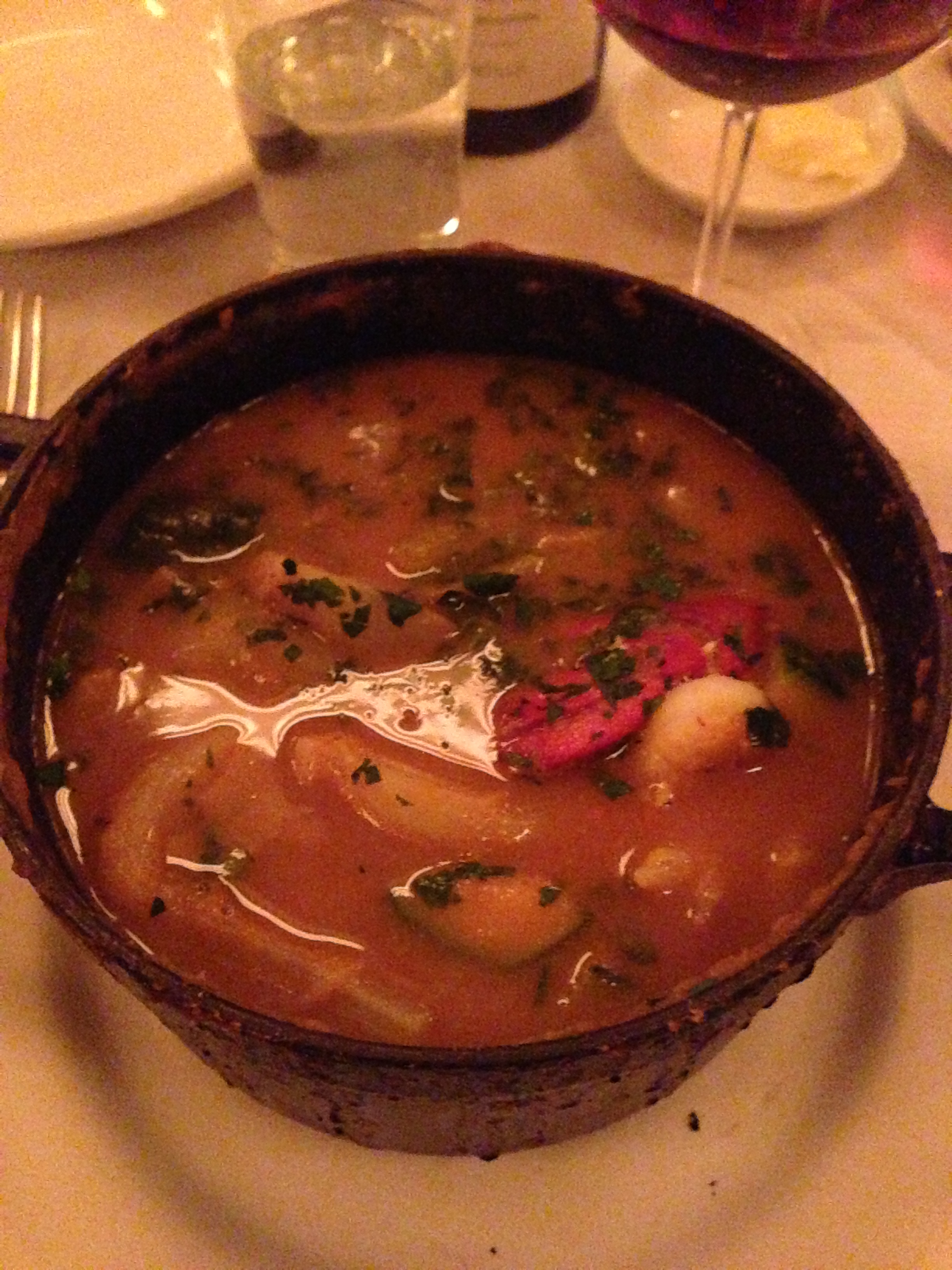 Finally, it was time for perhaps the most-anticipated part of our trip: dinner at Balthazar. I’ve heard Y speak reverently of this fabulous restaurant, and I’ve eaten a bowl of the bouillabaisse prepared from the Balthazar cookbook. It. Was. Incredible. Delicious wine, superb service, and out-of-this world bouillabaisse chock-full of cod, mussels, clams, potatoes, and a lobster tail. The photo just doesn’t do this dish justice.