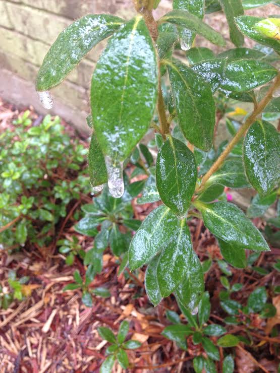 The camellias were brave in the face of ice.