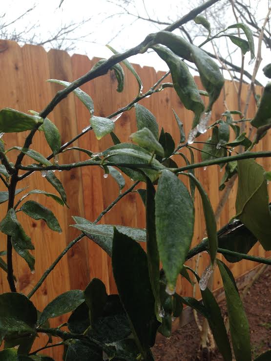 The lime tree is probably wishing it had a coat — not a coat of ice.