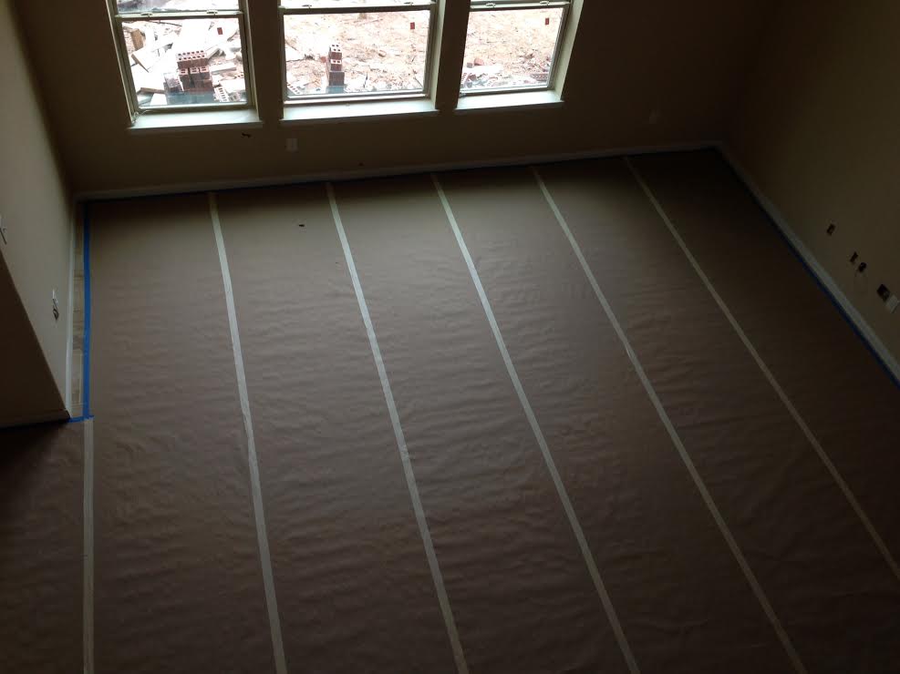 Aerial shot of the tile all covered up neatly. My favorite girl got nervous when I pulled up some of the paper to take a picture of the tile. I keep reminding her that this is our house and we’re allowed to do such things. She’s still nervous.