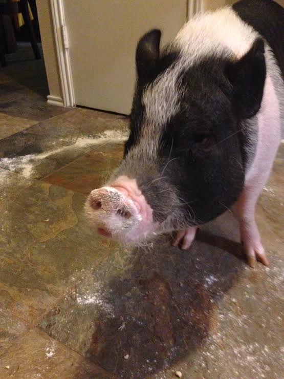Something tells me we will see more of this flour-coated pig in the new kitchen:
