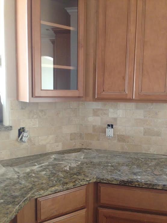 Kitchen cabinets are hung and the backsplash is in. Oh, and the countertops, too.
