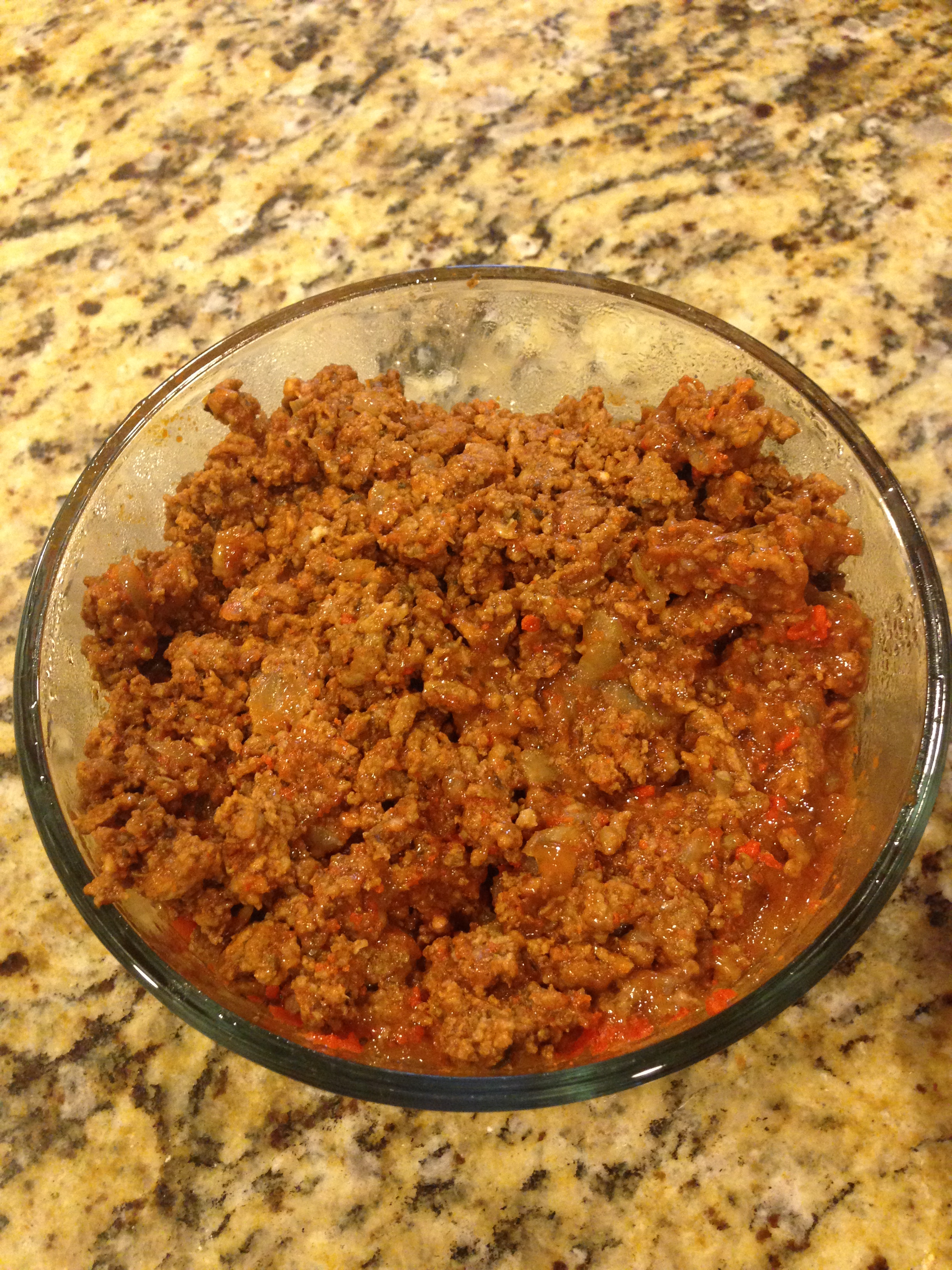 I was so tired from all the whisking, I forgot to take a photo of the meat layer lovingly patted into place, so imagine it in your mind. While you do that, I’m mixing another cocktail.