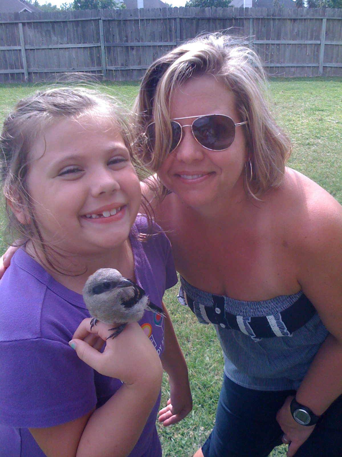 The day before my surgery, Macy and I had the great good fortune to meet Jeffrey, a baby mockingbird rescued and rehabilitated by our friends the Hoovers.