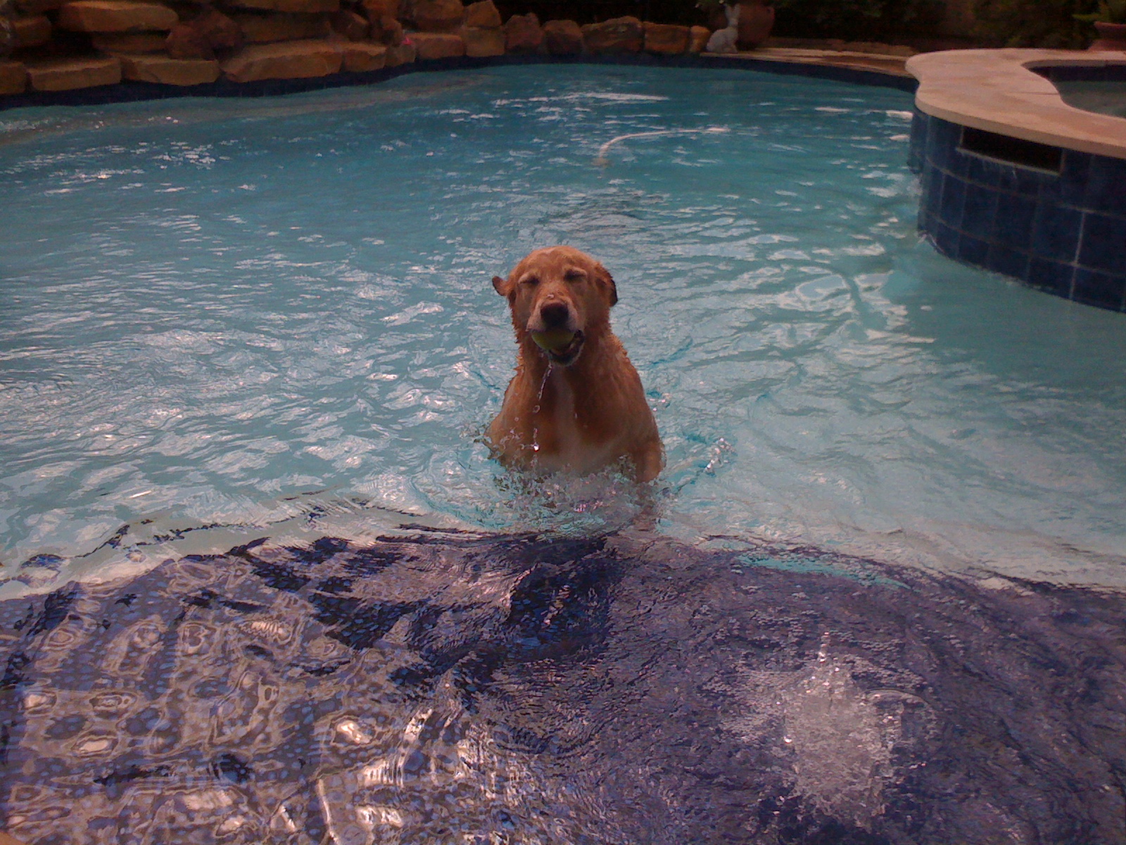 In between hospitalizations, I spent a couple of hours one day in my backyard in the sunshine, watching Harry frolic in the pool. After being cooped up in a dreary hospital room and feeling lousy, the fresh air, sunshine and unbridled canine joy were just what I needed.