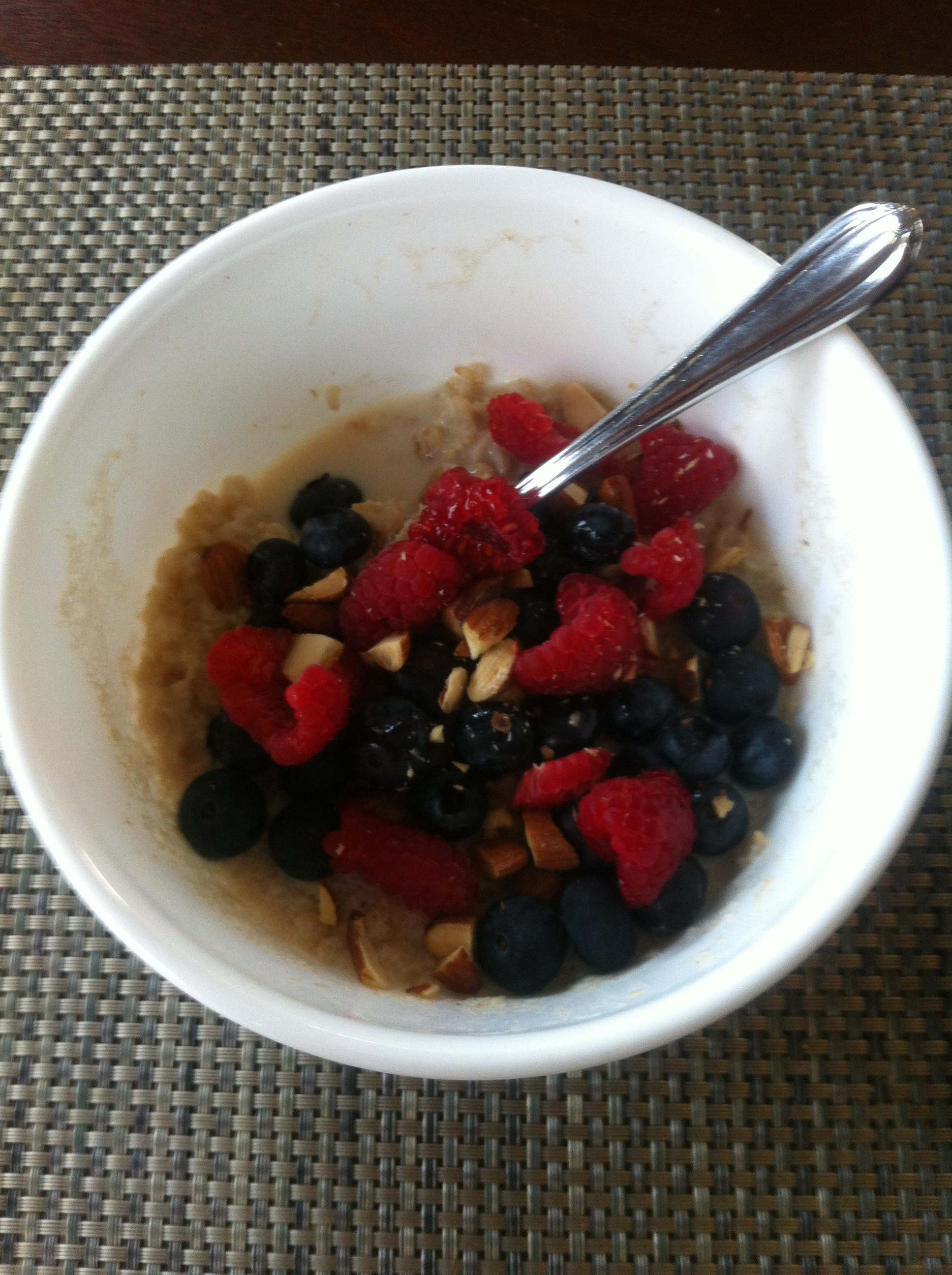 Instead, I’m going to pretend that it’s an ordinary day and dive into my most favorite and decidedly ordinary breakfast: old-fashioned oats, almond milk, blueberries, raspberries, and a sprinkling of almonds. Nothing fancy, not at all trendy, perhaps too carb-heavy, but a little spot of ordinary worth celebrating, especially on this sleepy day.