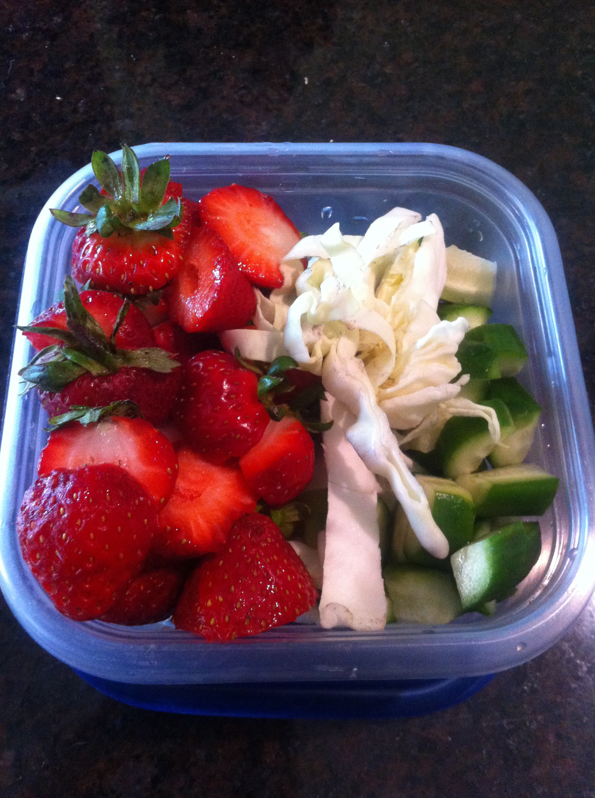 Birthday gifts for our little piggie included all of her favorites: cucumbers, wasabi peas (yes, she likes it spicy!), and strawberries.
