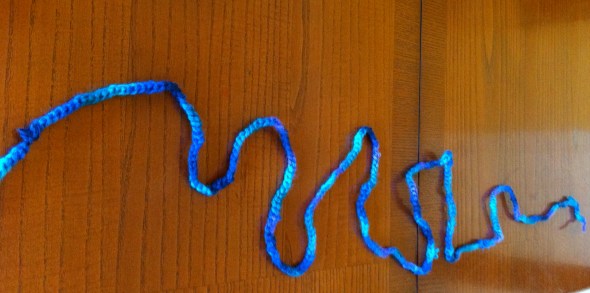 She was crocheting up a storm like she’d been doing it her whole life. I was quite amazed. Pretty soon, she had one long chain for her scarf. As my sweet mama used to say, she was cooking with gas.