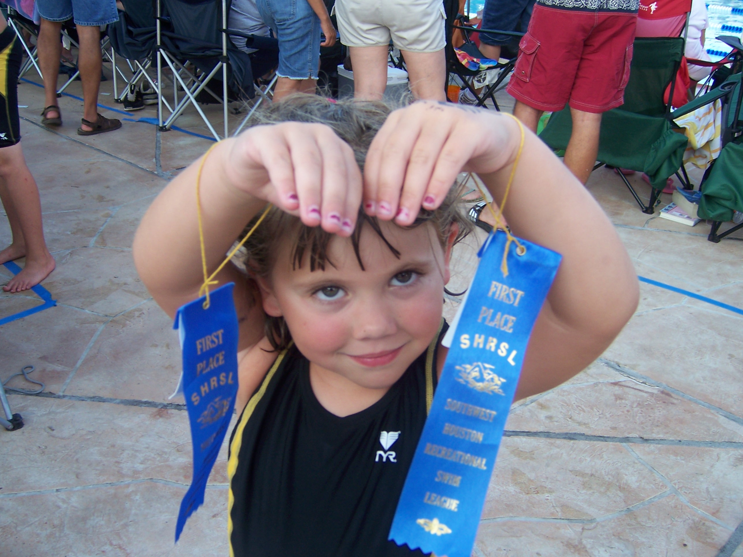 And swim she does, year-round. Yes, it’s usually warm in Houston, but there are some days in the January-February range that are chilly. Those days do not stop Miss M from swimming. Once when she was 3 or 4 and insisted on swimming on a chilly day, Aunt Sophia asked her if it was “nice and cold” and Macy said, “no, it’s nice cold.”