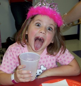 At least she looks happy in this photo. I’m just glad she wasn’t blinded by all the sparkly gunk in and around her eyes.