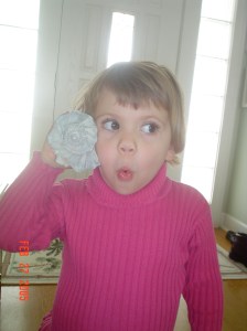 She had just turned 3 and we were visiting my parents’ friends, Keith & Nancy Davis, at their beach house in Galveston. It was February, so cold and windy but we still got out on the beach. Macy found this shell and was convinced she could hear the ocean.