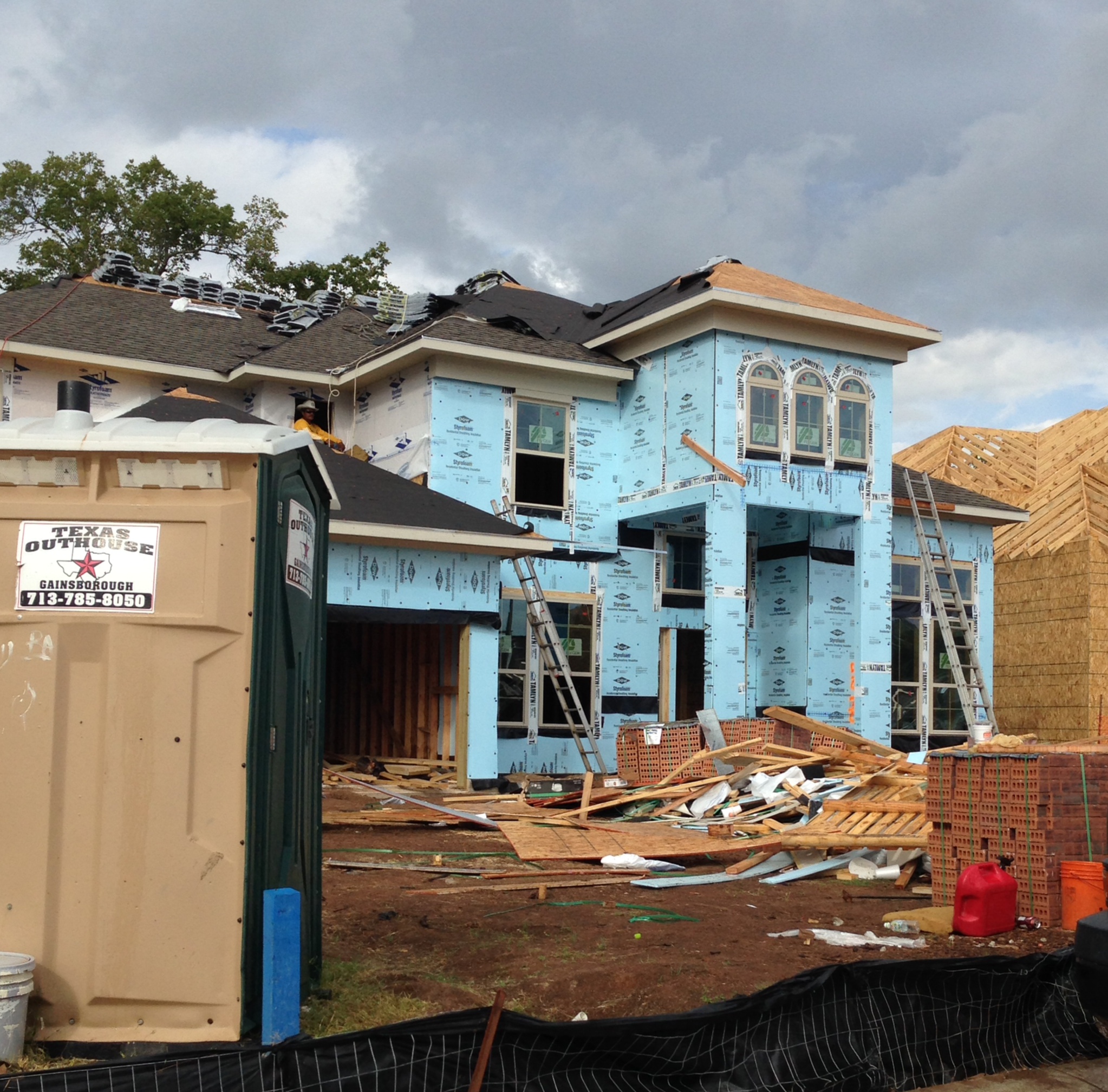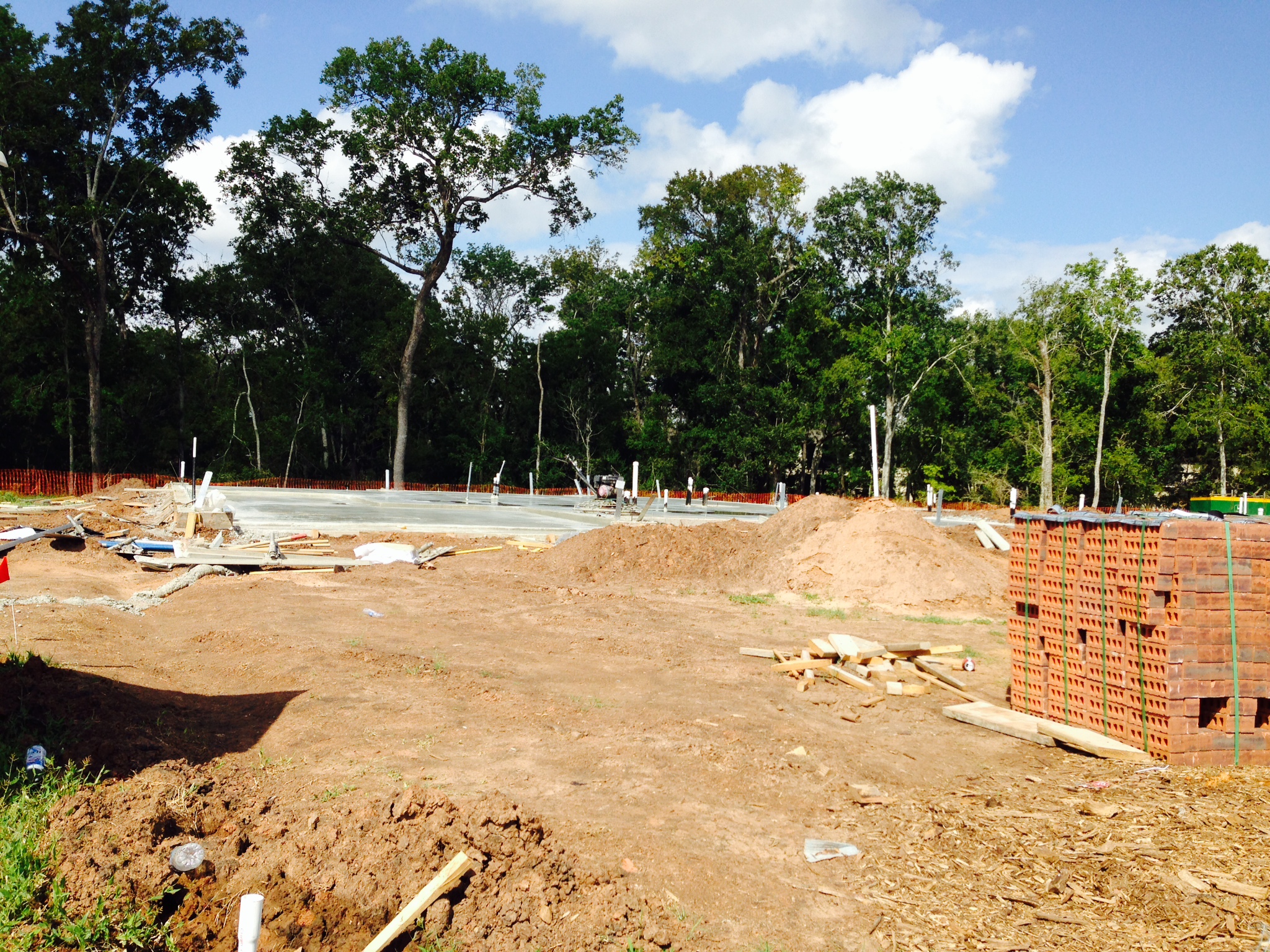 The view out our front door. The Port-a-Potty will stay the whole time the house is being built, so it’s featured in a lot of photos. We’re working a deal to keep it, but on the side of the house, for the teenage boy who resides with us.