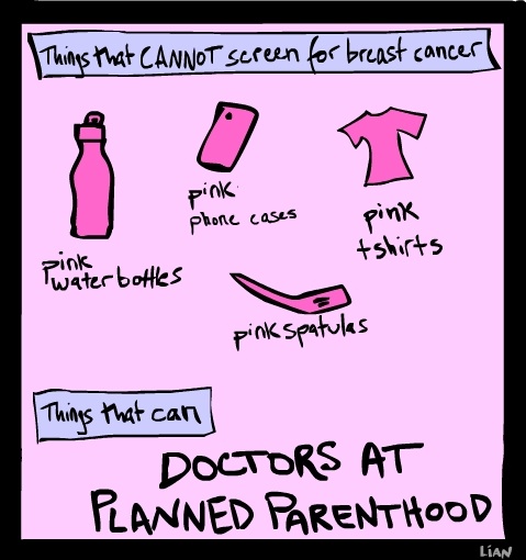 As I mentioned in yesterday’s post, I sure wish Komen would have just been honest about its motivations to drop PP in the grease. The fact that Komen continues to hide behind the travesty of an ongoing “investigation” instead of coming clean about its reason for breaking with PP sickens me. Komen founder and chief executive Nancy Brinker continued the lie in a news conference yesterday, saying that SGK’s decision to pull its funds from PP has nothing to do with politics or abortion.