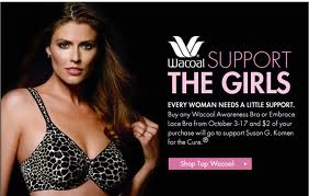 “Help Wacoal KNOCKOUT breast cancer at a Fit for the Cure event,” reads the ad. It’s a simple idea: the bra maker will donate $2 for every woman who comes to the store to be fitted for a new bra during the event. And for every bra purchased, an additional $2 will be donated.