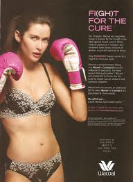 I’m all for donating to good causes, and I’m all for shopping. But I have 2 problems with this Wacoal campaign. First, the money is being donated to Komen “for breast cancer research and community outreach programs.” Come on, Wacoal — donate for something that will actually make a difference. We’ve all seen the pathetic Komen numbers on just how much (or how little) of these donations go toward research. Research that could potentially find a cure. As in Susan G. Komen FOR THE CURE. Or research that could potentially KNOCKOUT breast cancer, as in the Wacoal FI{gh}T FOR THE CURE slogan so tantalizingly states. Wacoal has donated $2.5 million to Komen from its FI[gh}T for the Cure events. Assuming that Komen continues on its current path, it will use 19 percent of that $2.5 mil for research. I’m no expert on medical research, but based on my own experience with my medical bills, I’m guessing $475,000 won’t go very far toward finding a cure.