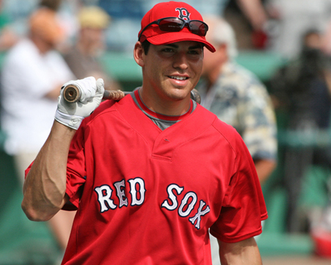 He now wears number 2 on his jersey, though looks no less foxy. That’s JD Drew crouched next to him, close enough to whisper in Ell’s ear (lucky bastard). I’m sure they were discussing some serious strategy, or maybe making fun of Dora (aka Alex Rodriguez) who is such a tool and deserves to be made fun of at every possible opportunity.