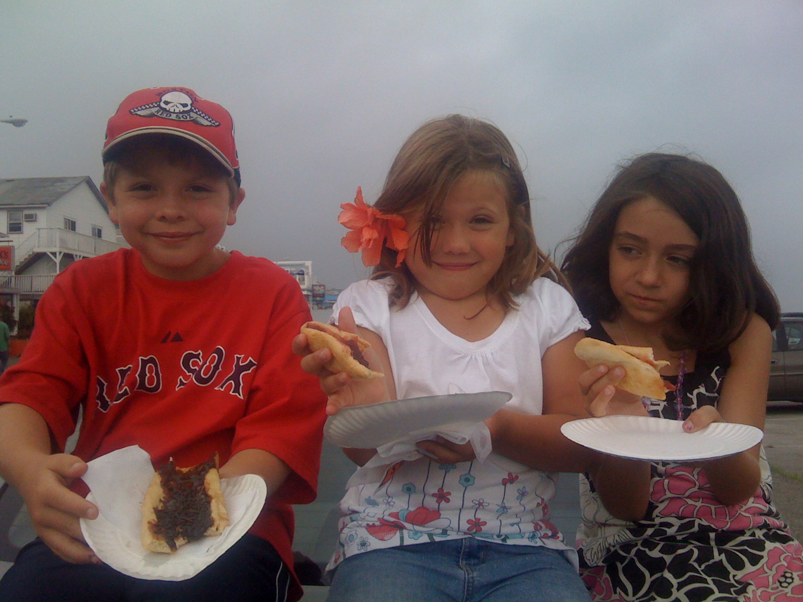 Another Sox ensemble while enjoying another delicacy at the shore: Blink’s Fried Doe. Payton prefers chocolate frosting and chocolate sprinkles. Only they call them jimmies at the shore.