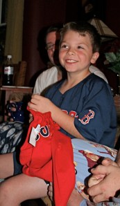 Here he is before the birthday bash, in yet another Sox shirt. He and Ed are smiling so big because they love the Red Sox! In fact, it was Ed who first brainwashed Payton into becoming part of Red Sox Nation. Thanks, Ed! I’ve never been more proud than I was during a game at Fenway when Pay was little (4 or 5 years old at most) and quickly established himself among our seasoned seat-mates as a real fan. He knew who was next in the batting order, and who made the last out. It wasn’t long before the men around us were asking Pay questions about the roster, and he knew the answer every time.
