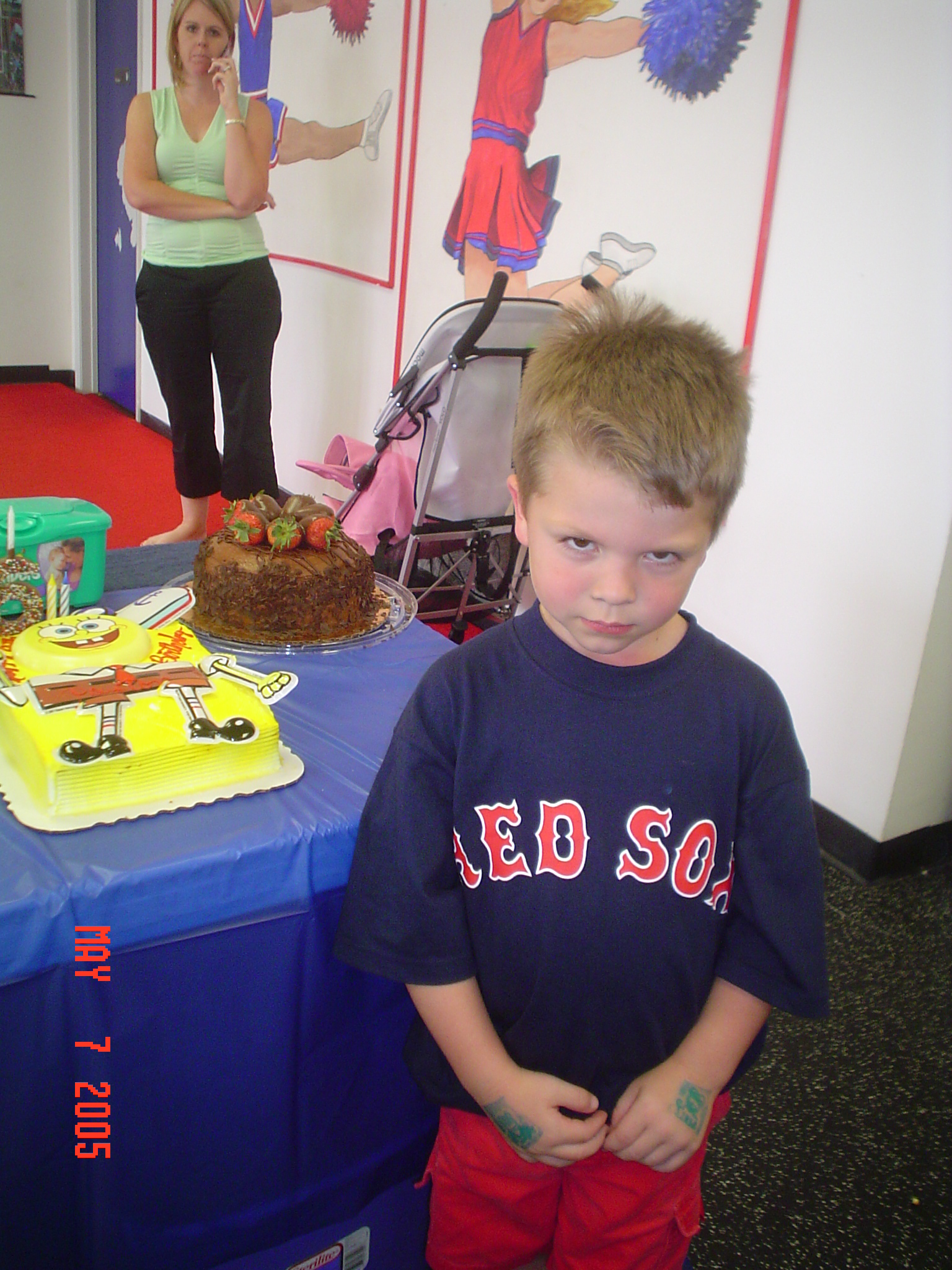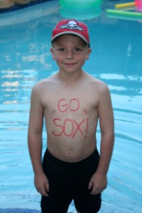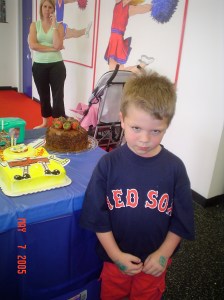 Guess what he wore to his 6th birthday party? Yep, a Sox shirt. He loved the shirt, but wasn’t too happy about having to pose for a photo.