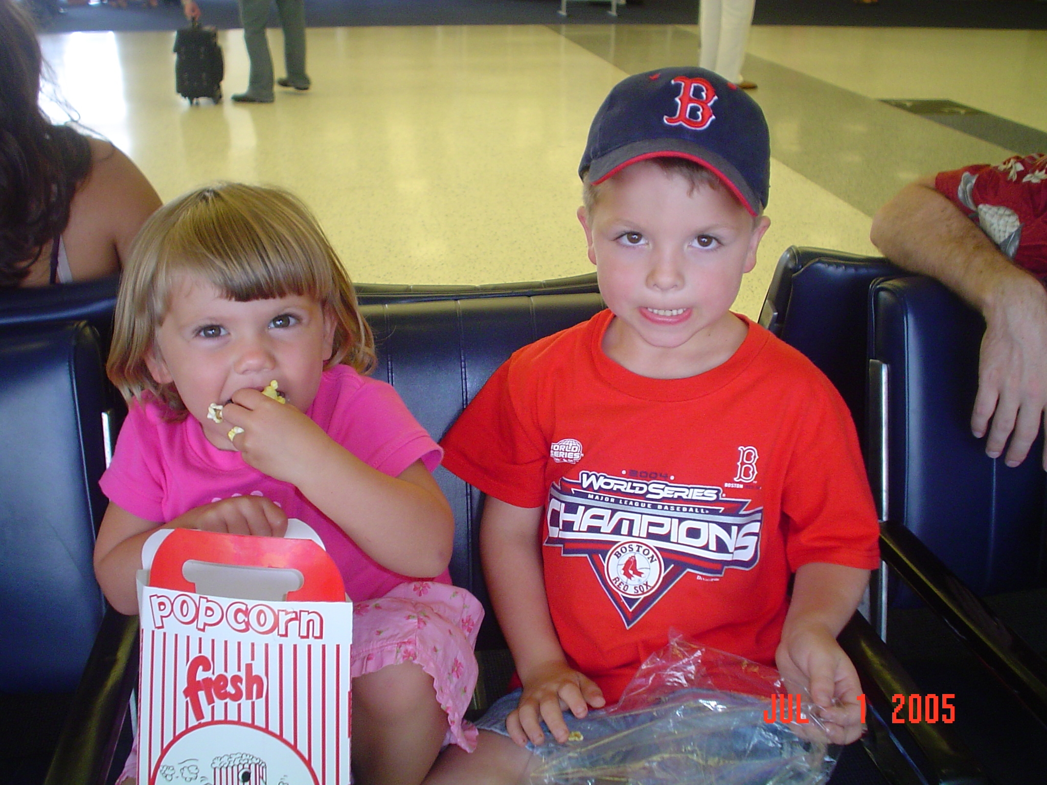 For a while, Macy was in on it, too. This is one of my all-time favorite pics of my kids. In New Orleans, on the way home from Fort Meyers, FL, at spring break for, what else? Red Sox spring training.