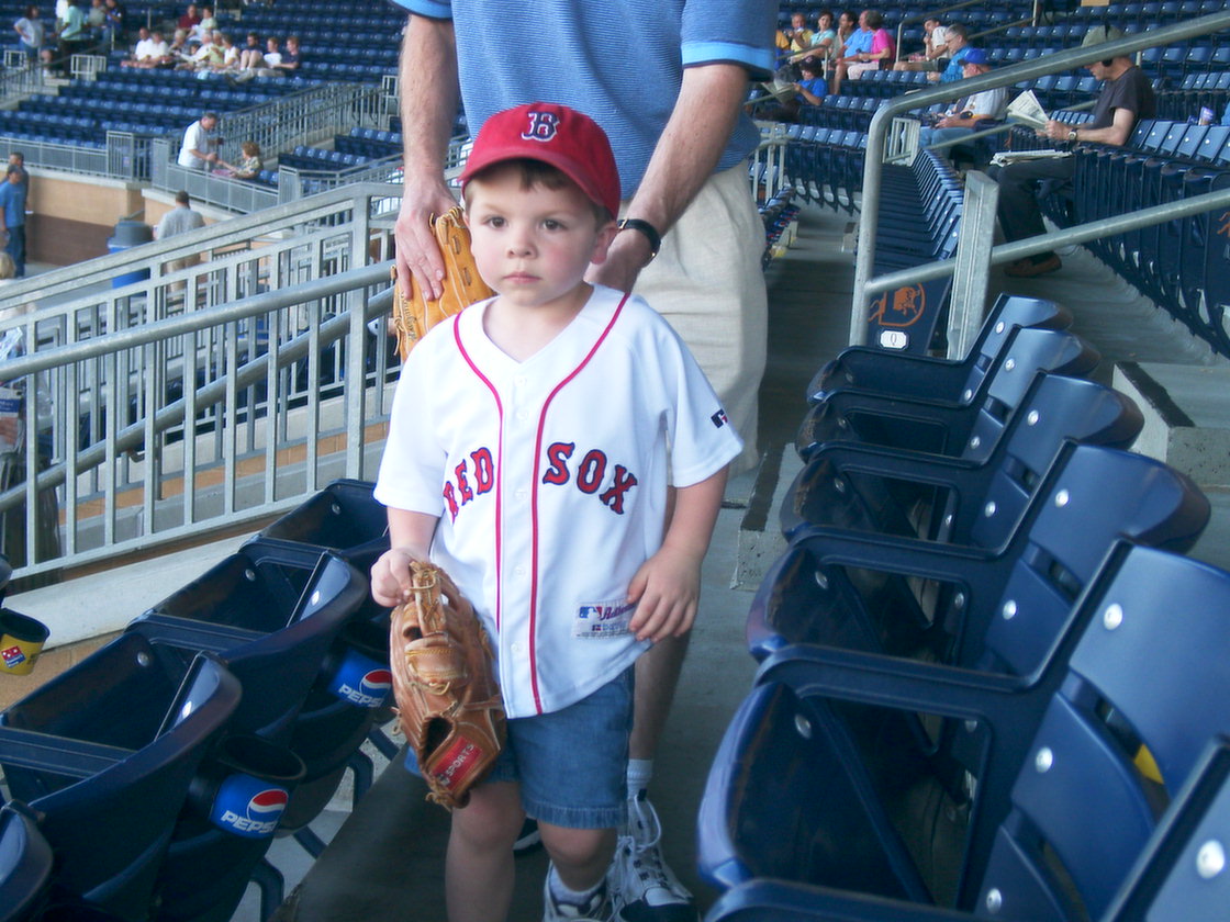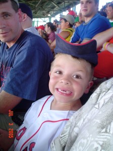 Here he is at Fenway Park in jersey and rally cap, showing off his newly-toothless grin. He had just turned 6, and was already a veteran traveler to Boston and Fenway Park.