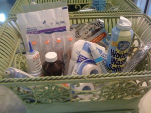 So this weekend I got cocky and decided it was time to pack away the supplies. I no longer needed the saline and gauze to clean a wound, or the antimicrobial silver dressing to put inside the wound, or the antibiotic cream and tape. My skin can finally breathe now that it’s not encased in plastic dressing and tape. I’ve been lax in taking my temperature every day, and only do it every other day. I still have the syringes and teeny little vials of B12 liquid that gets injected in my arm once a month. And I still have a stash of pain pills, which I don’t need but I like knowing they’re around, just in case. But for the last several weeks, I haven’t needed to get into those supplies.